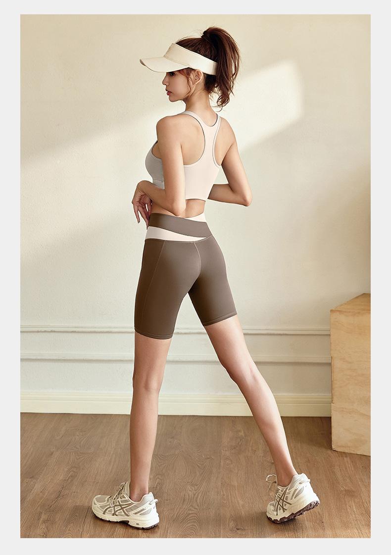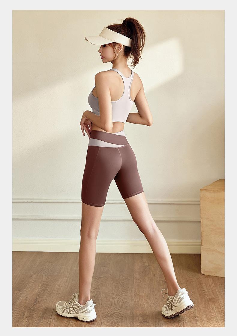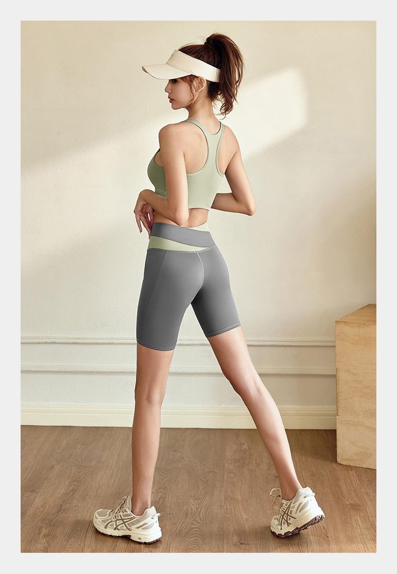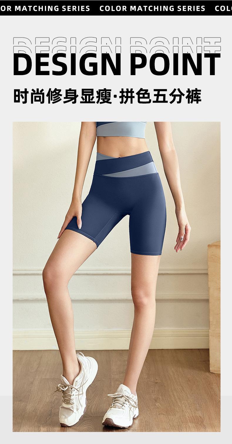 Procesando y Personalizando Pantalones de Cinco Puntos con Bloques de Color Sin Líneas Vergonzosas, Pantalones de Yoga, Alta Elasticidad, Aspecto Adelgazante, Mallas Deportivas para Fitness y Running
