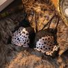 Íntimos de Espalda Hermosa con Botones Delanteros para Mujeres con Busto Pequeño, Sin Varillas, Encaje Delgado y Sexy con Estampado de Leopardo, Brasier Push-Up para Verano