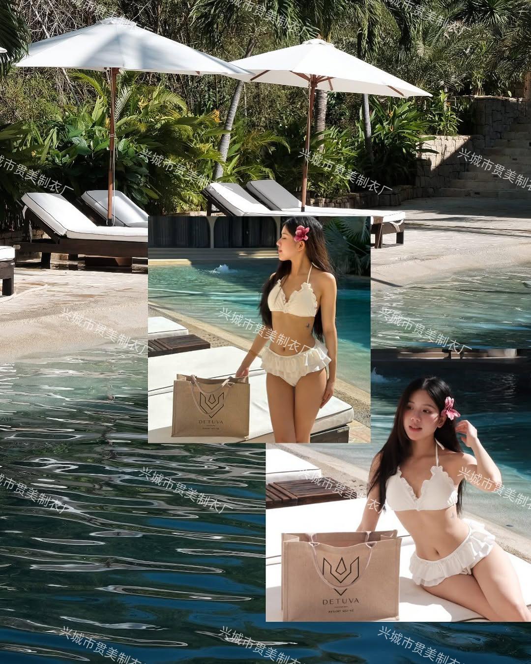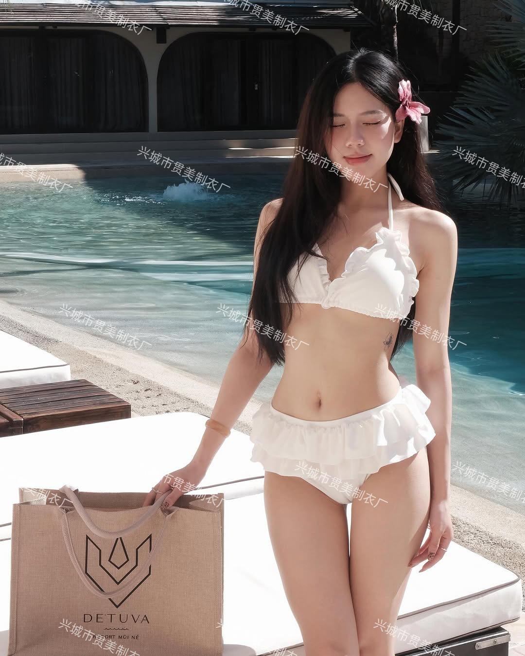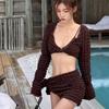 Traje de Baño Dividido Nuevo Estilo Ins Traje de Vacaciones Marinas Falda con Abertura Bikini Traje de Baño de Tres Piezas