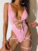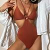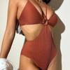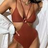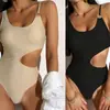 Traje de baño 2023 para dama nuevo europeo y americano sexy color sólido tirante traje de baño al por mayor ajustado hueco traje de baño comercio exterior