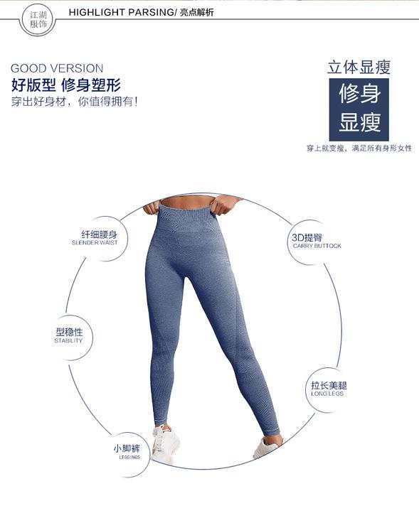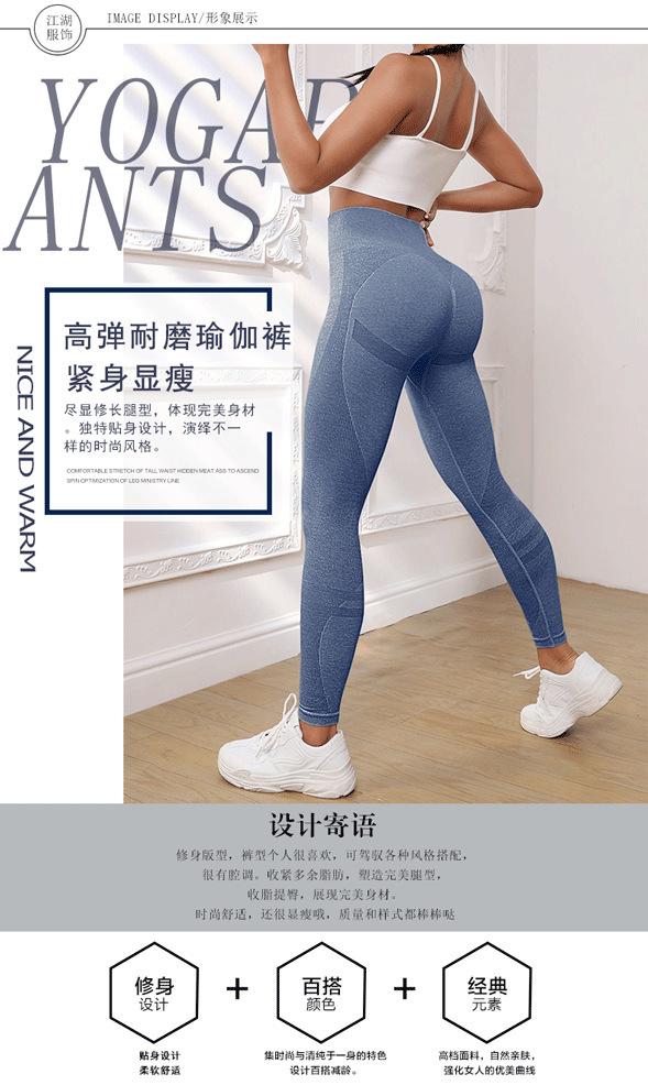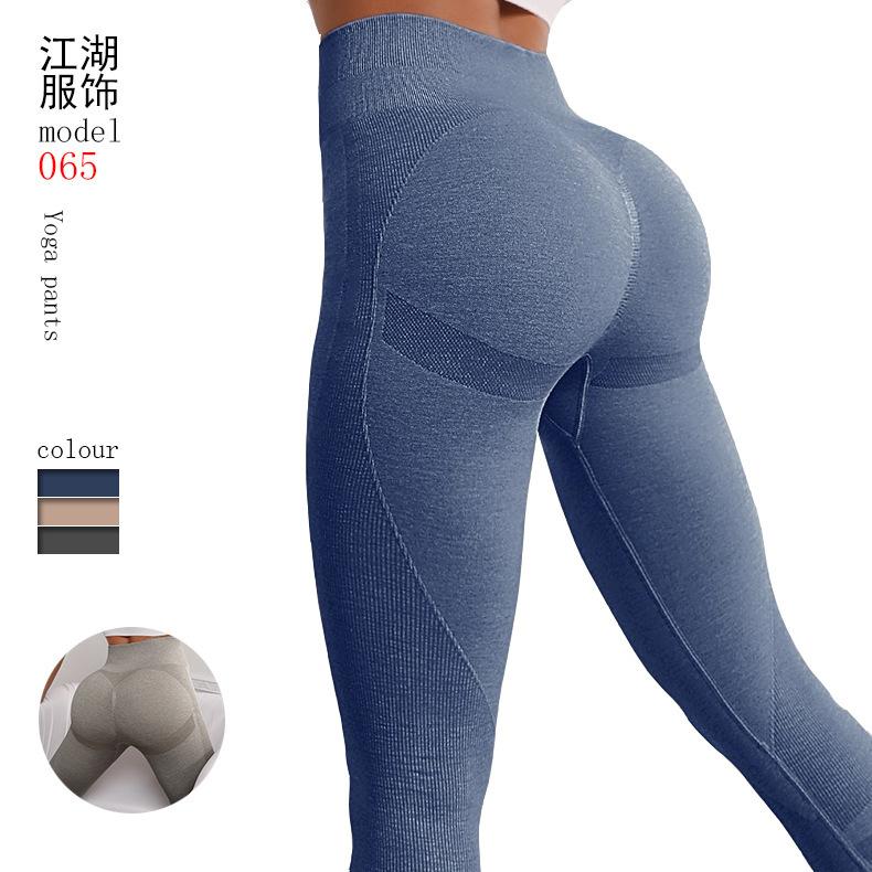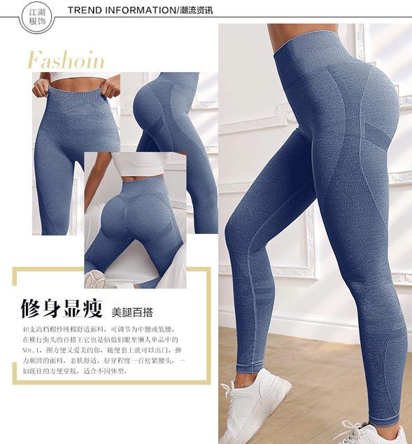 Desarrollo Direccional de Primavera y Verano Pantalones Largos Deportivos de Yoga Sin Costuras Europeos y Americanos Cintura Alta Levantamiento de Cadera Fitness Básico Color Sólido Acanalado Mujer