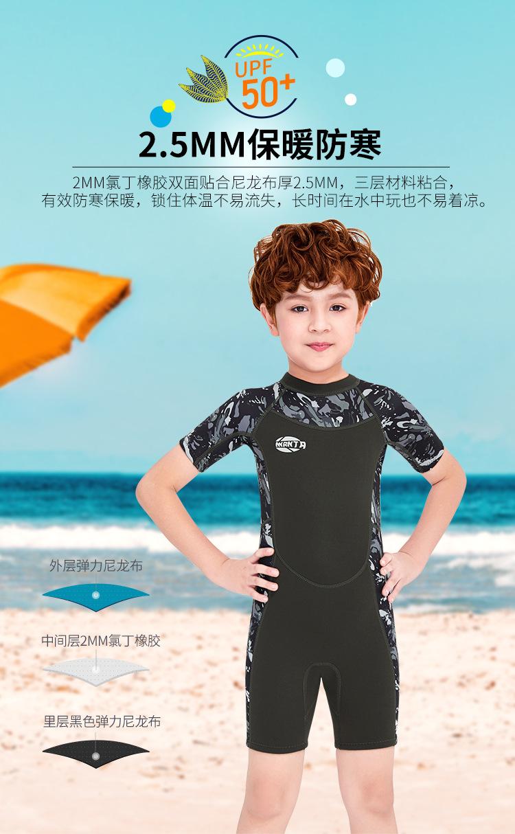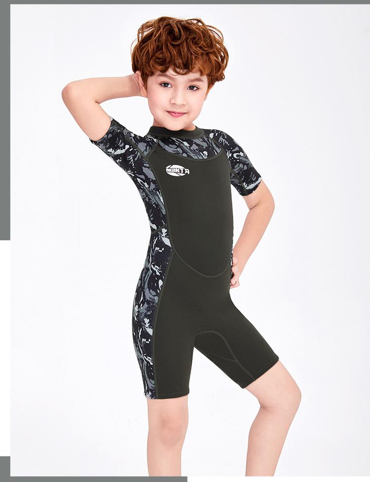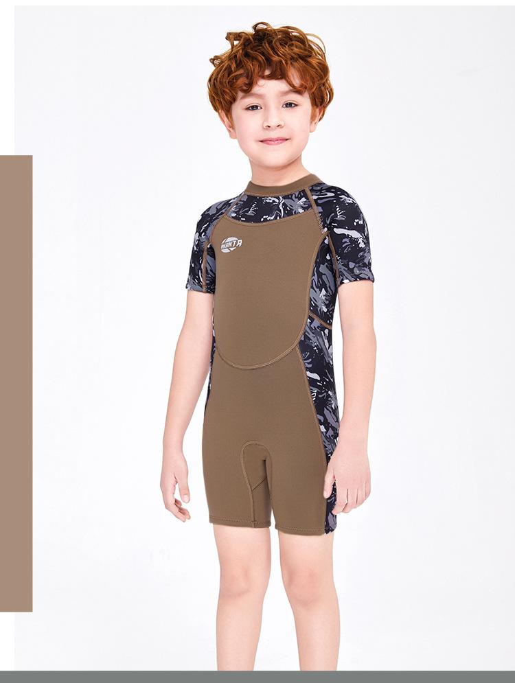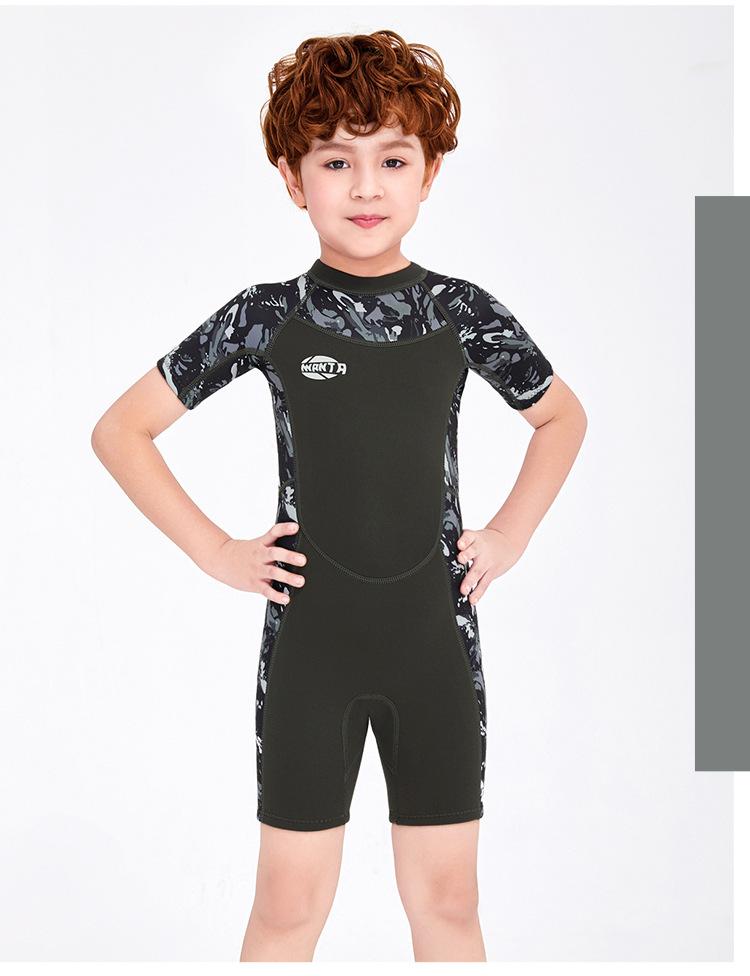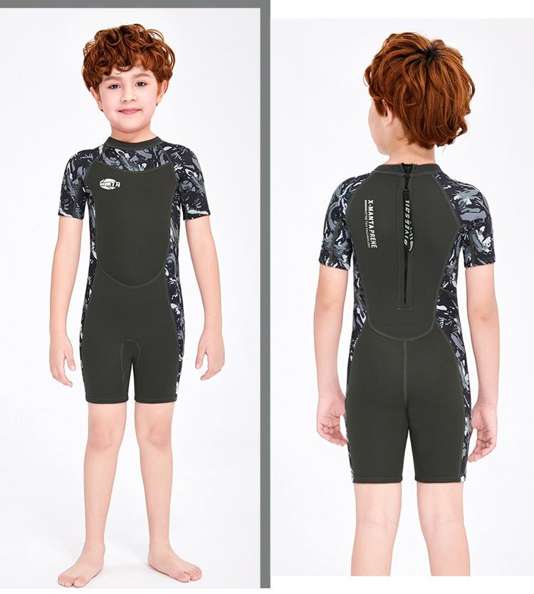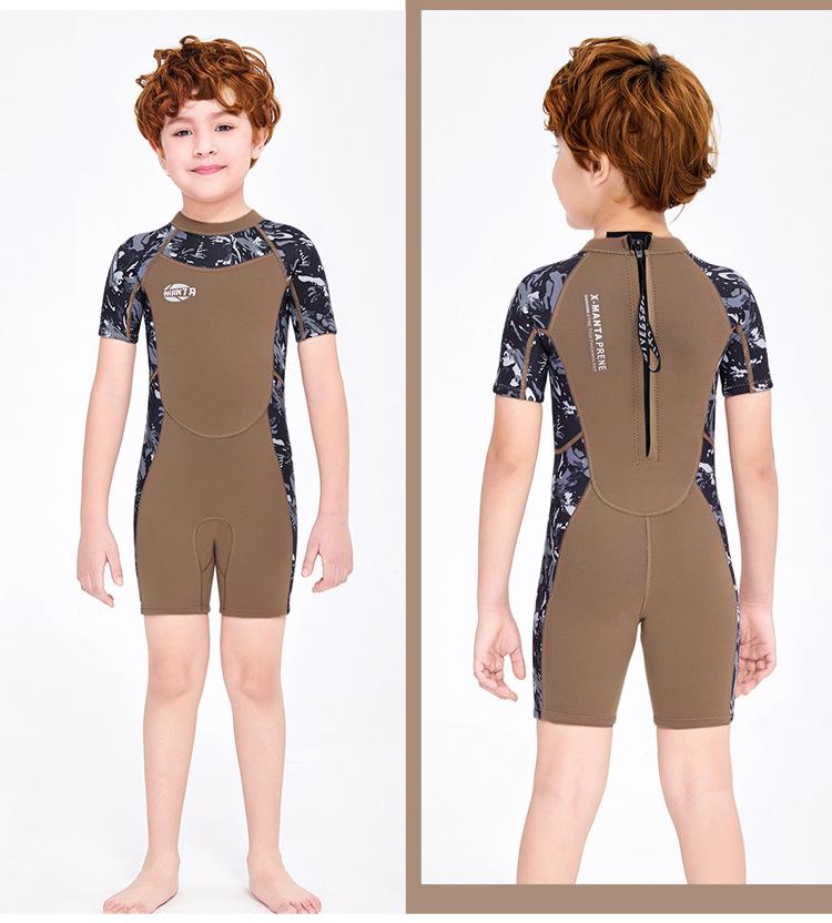 Entrega de una pieza Traje de buceo de manga corta para niños de 2.5MM traje de baño cálido de una pieza para hombre traje de baño de snorkel para niños para surf