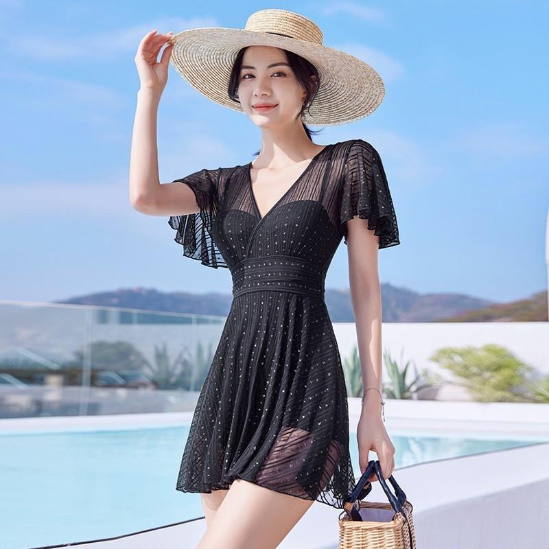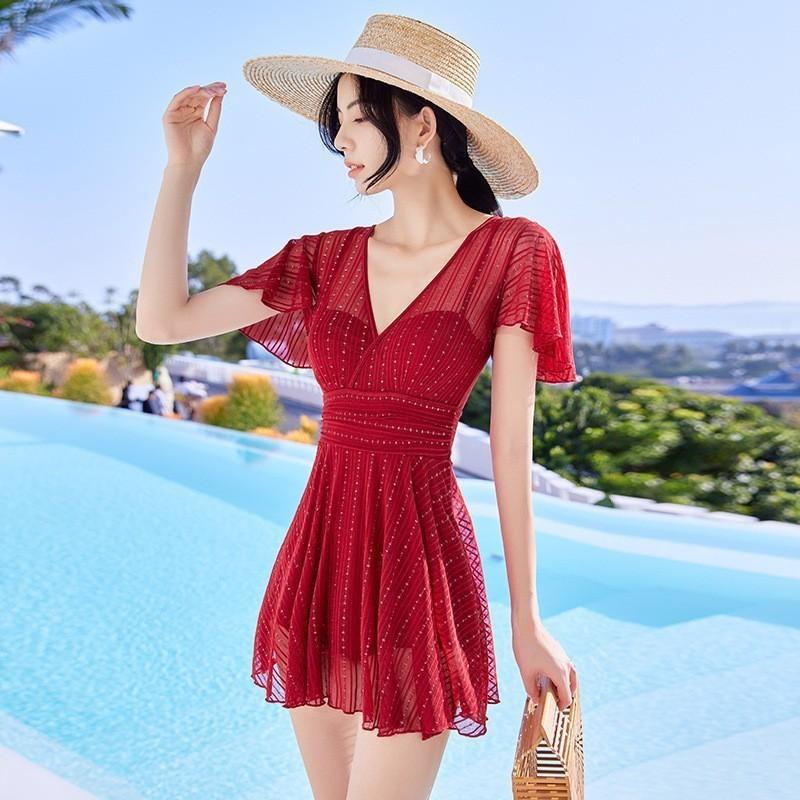 Traje de baño de una pieza conservador adelgazante para mujer con falda que cubre el vientre, traje de baño para estudiante, playa, aguas termales, liquidación al por mayor