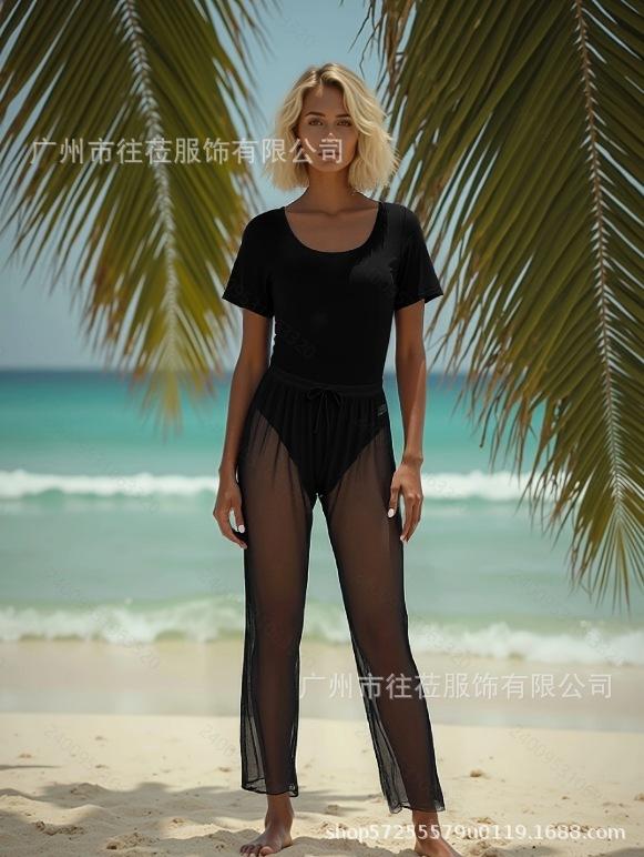 2025 Nuevo Exportación Europea y Americana Sexy Lencería para Mujer Playa Malla Traje de Baño Cubre-Pantalón Transparente Cinturón Banda Elástica