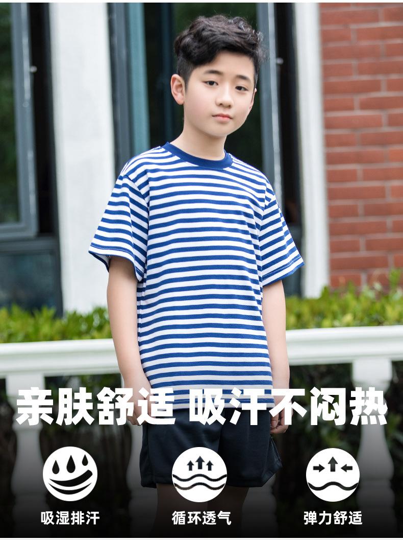 Traje de Entrenamiento Físico para Niños Cema Camiseta Rayada Azul Marino para Hombre Camiseta Deportiva Manga Corta para Entrenamiento Militar para Mujer Fabricante Venta al por Mayor