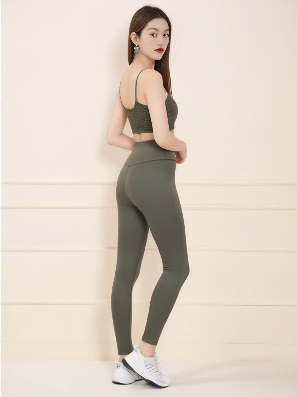 Pantalones de Yoga Monocromáticos de Cintura Alta, Tejido Sensación Desnuda, Amigable con la Piel, Transpirable, Tecnología Sin Costuras, Adecuados para Fitness y Baile, Primavera y Verano