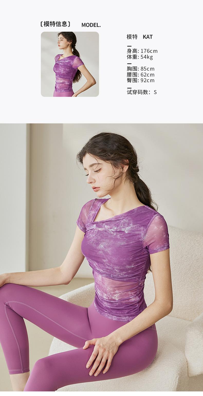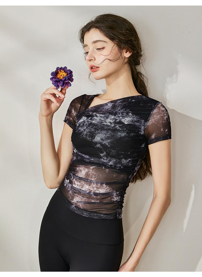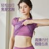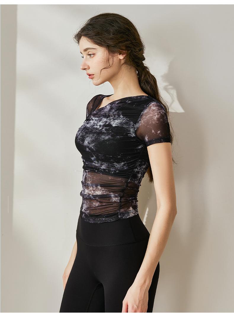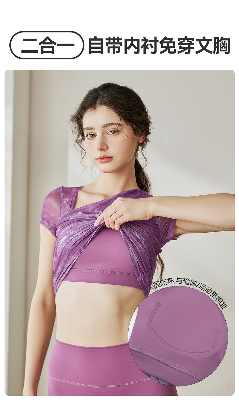 Ropa de Yoga para Mujer Otoño e Invierno Nuevo Estilo Malla Impresa Chaleco con Almohadilla en el Pecho Deportes al Aire Libre Manga Corta Ropa de Fitness Top