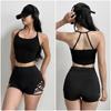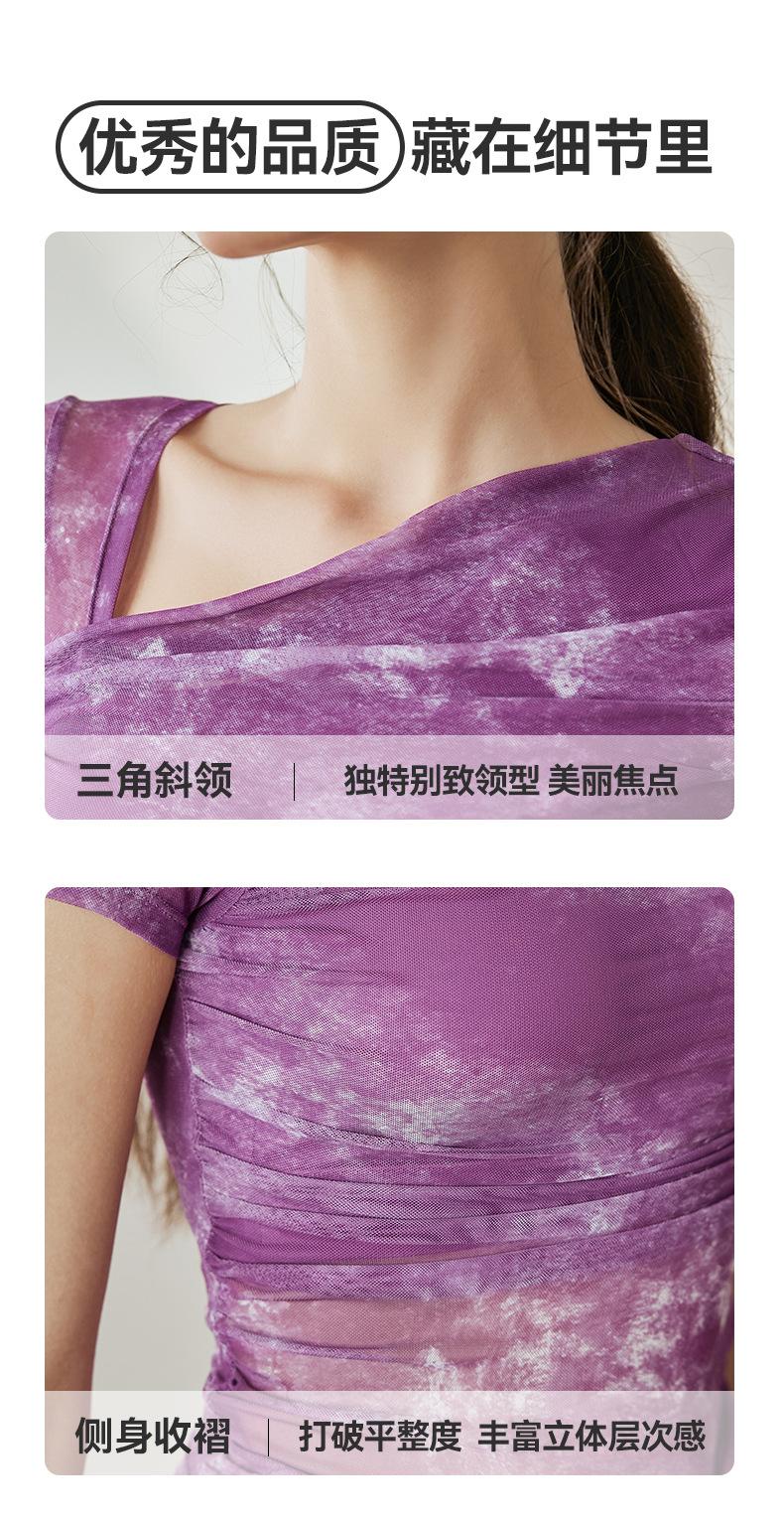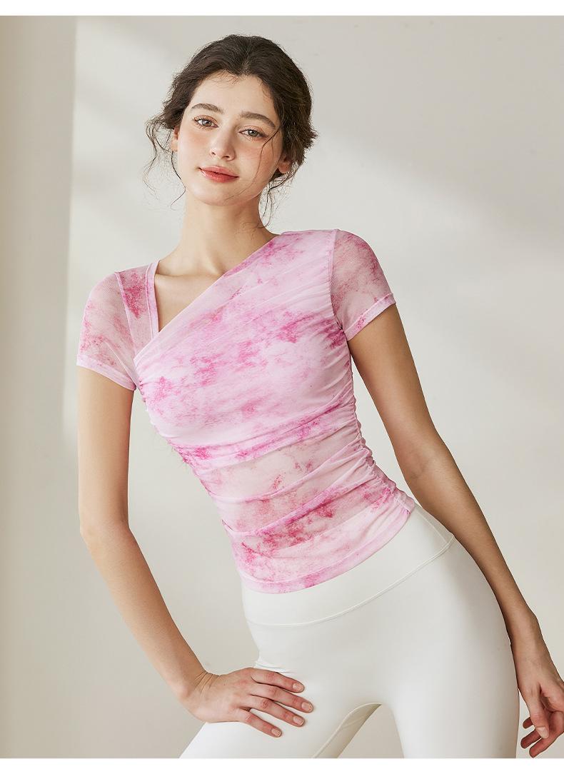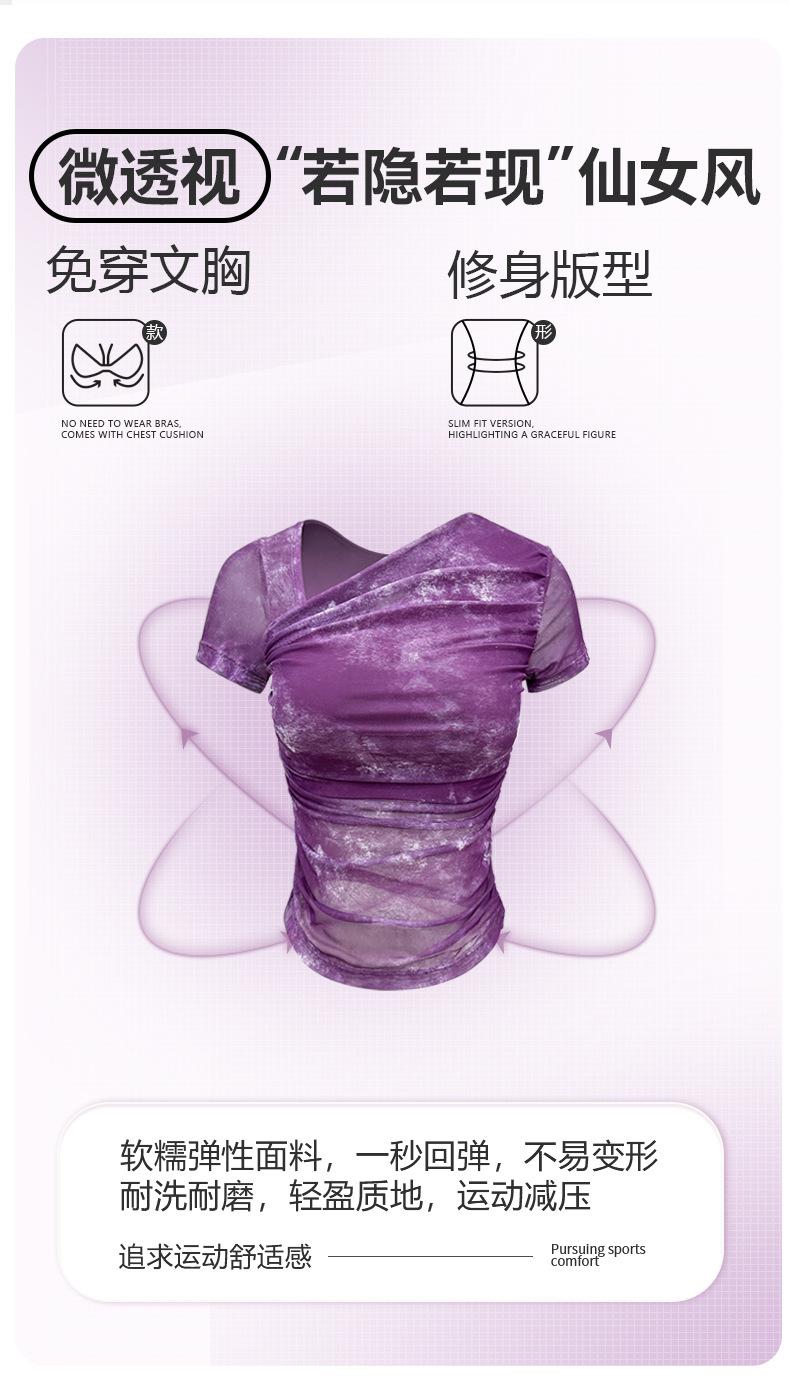 Ropa de Yoga para Mujer Otoño e Invierno Nuevo Estilo Malla Impresa Chaleco con Almohadilla en el Pecho Deportes al Aire Libre Manga Corta Ropa de Fitness Top