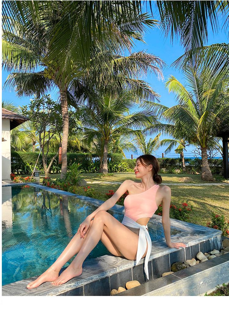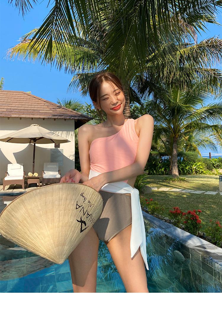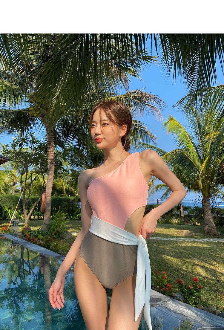 FUENTE Moda de fábrica para mujer de una pieza un hombro combinación de colores original ajustado sexy pecho pequeño push up traje de baño de playa bikini