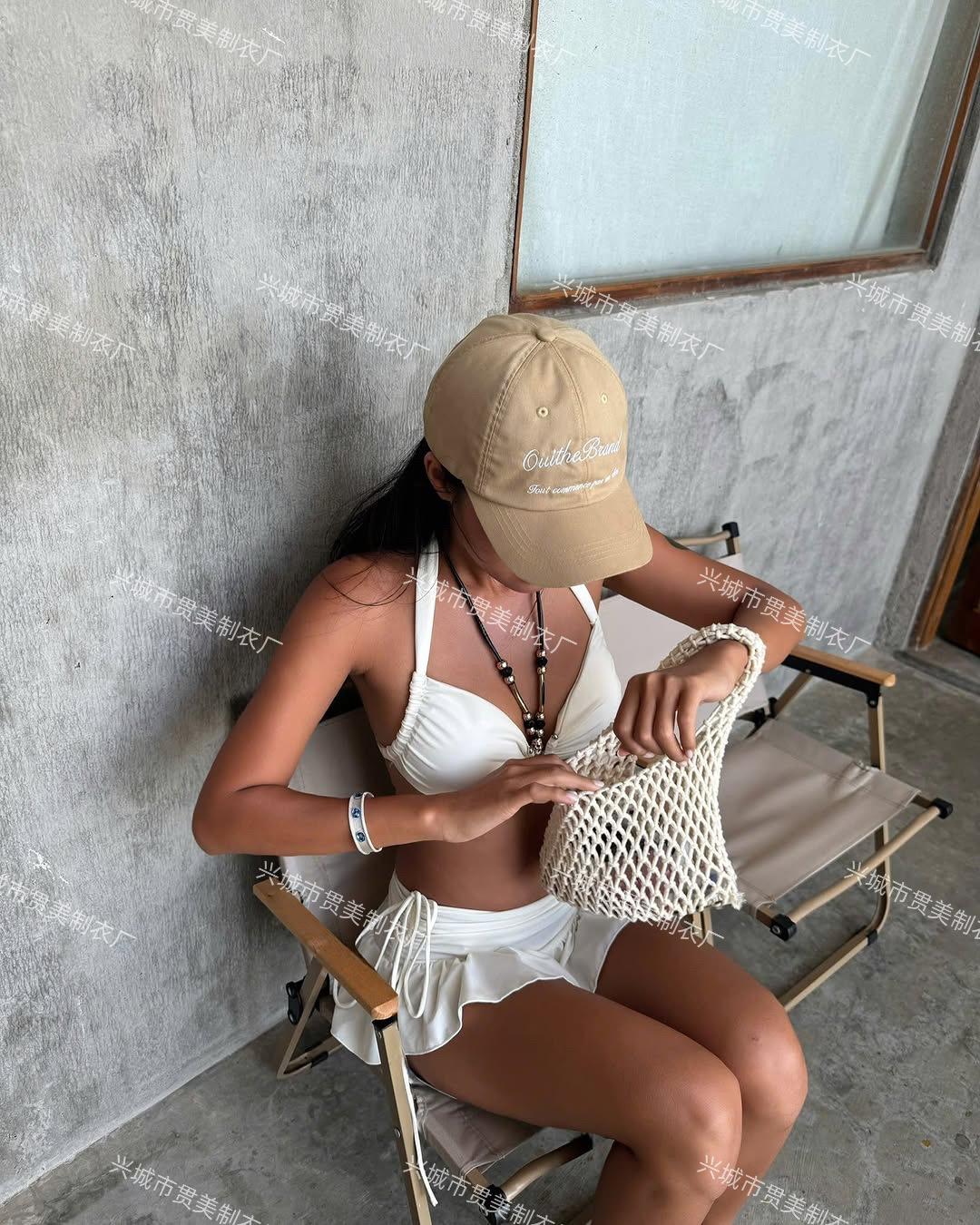 Nuevo traje de baño de tres piezas con escote pronunciado, push-up, espalda descubierta, sexy, para mujer en vacaciones, bikini de alta gama.