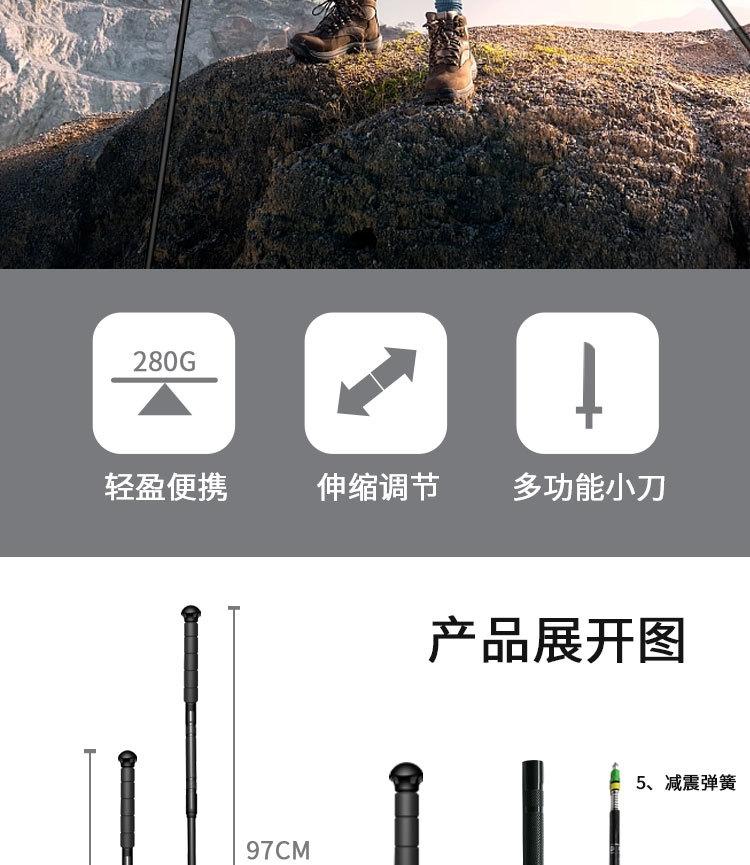 Standard telescopic about 97-125cm, Extended and retracted approximately 97-143cm