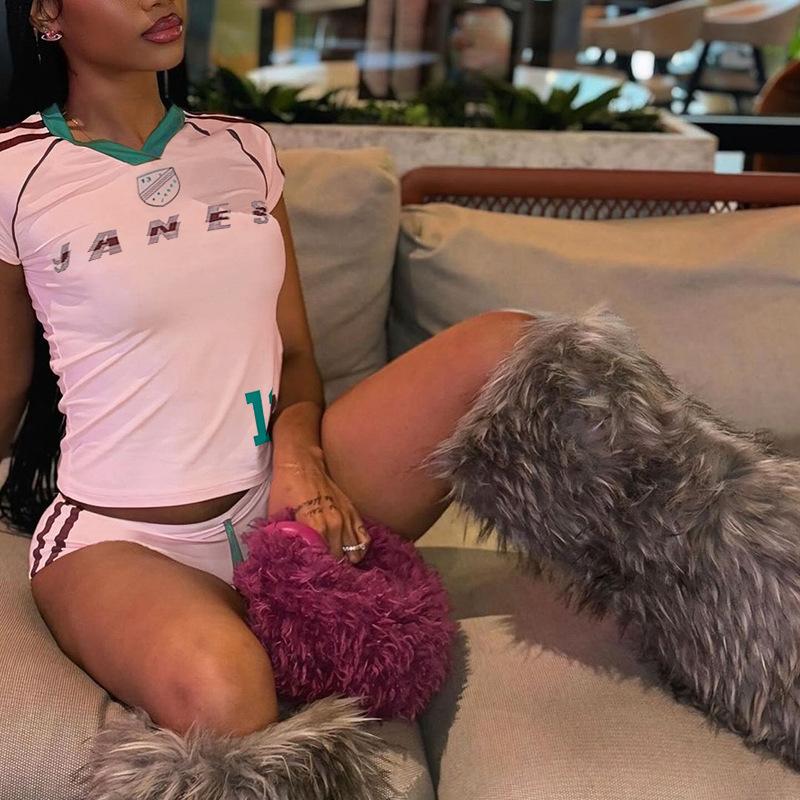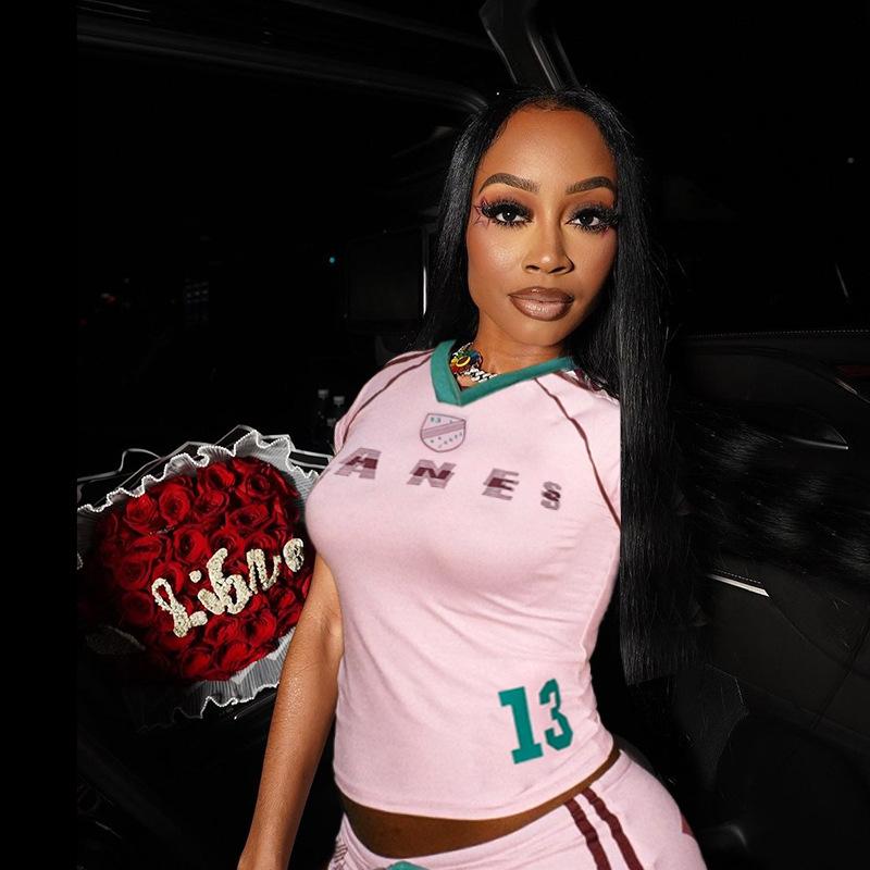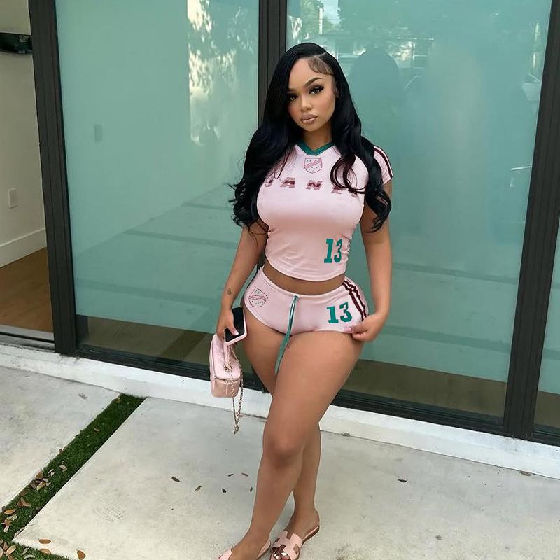 Traje deportivo informal ajustado de manga corta con estampado simple de verano de playa europeo y americano 2025 para mujer al por mayor