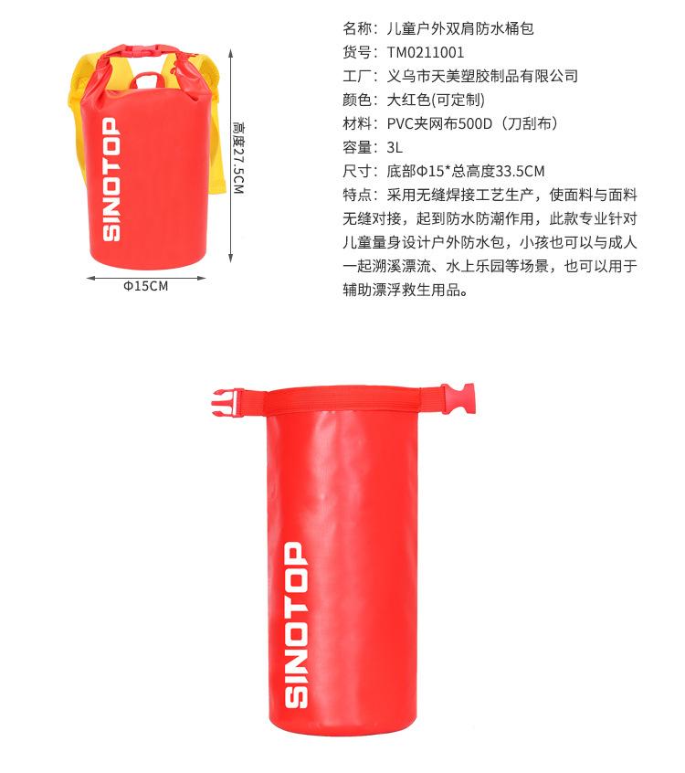 Tianmei Nueva Bolsa Cubo Impermeable para Niños para Exteriores Rastreando Arroyos Flotando Playa Mochila Infantil Impermeable Personalizada de Fábrica