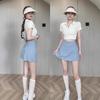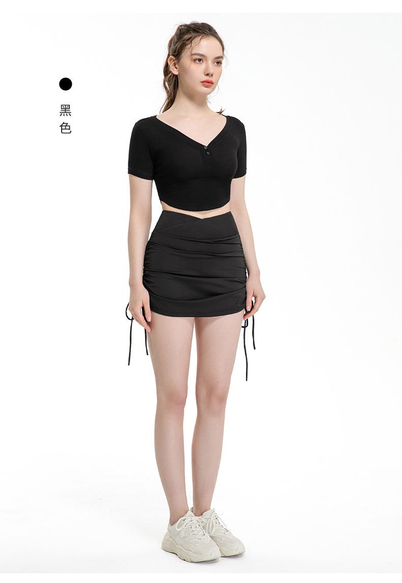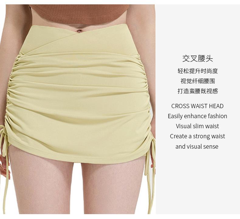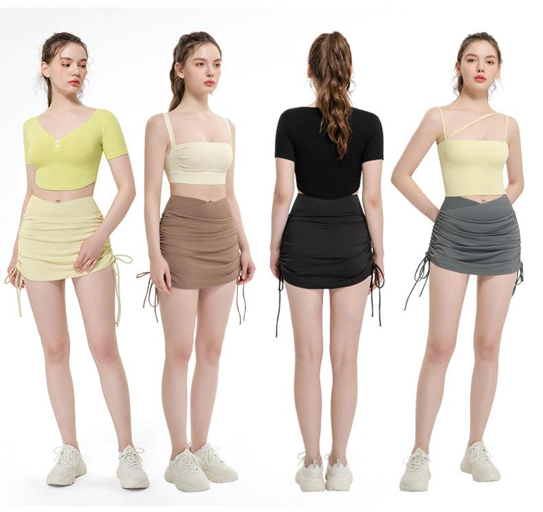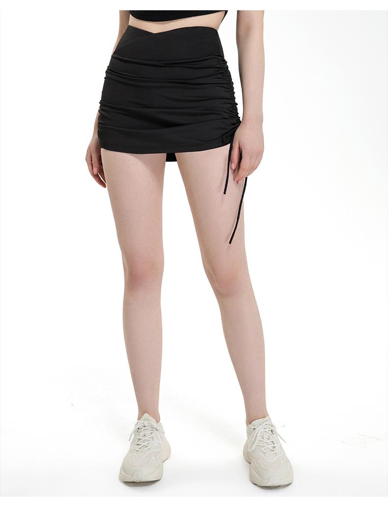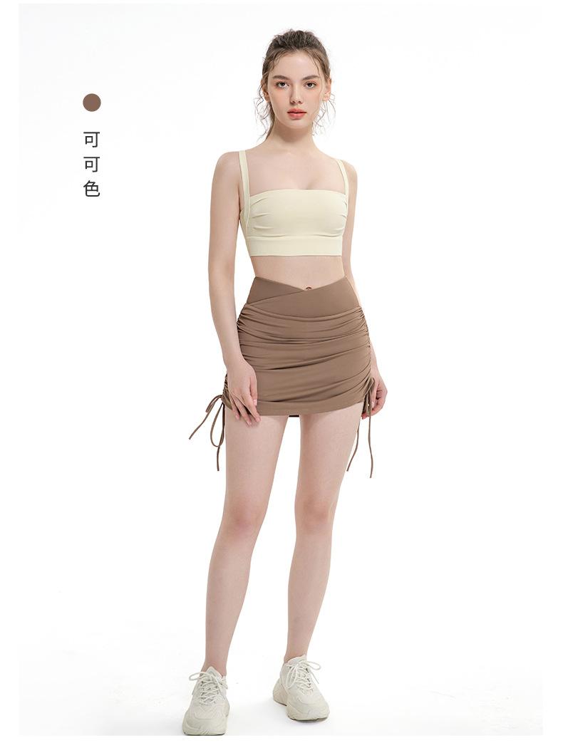 High waist skirt pleated drawstring fake two-piece yoga group girl
