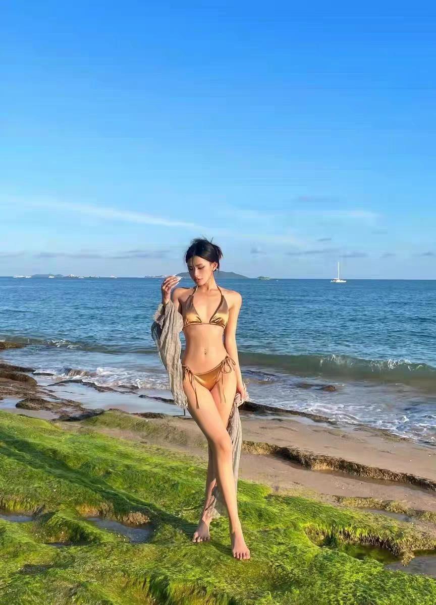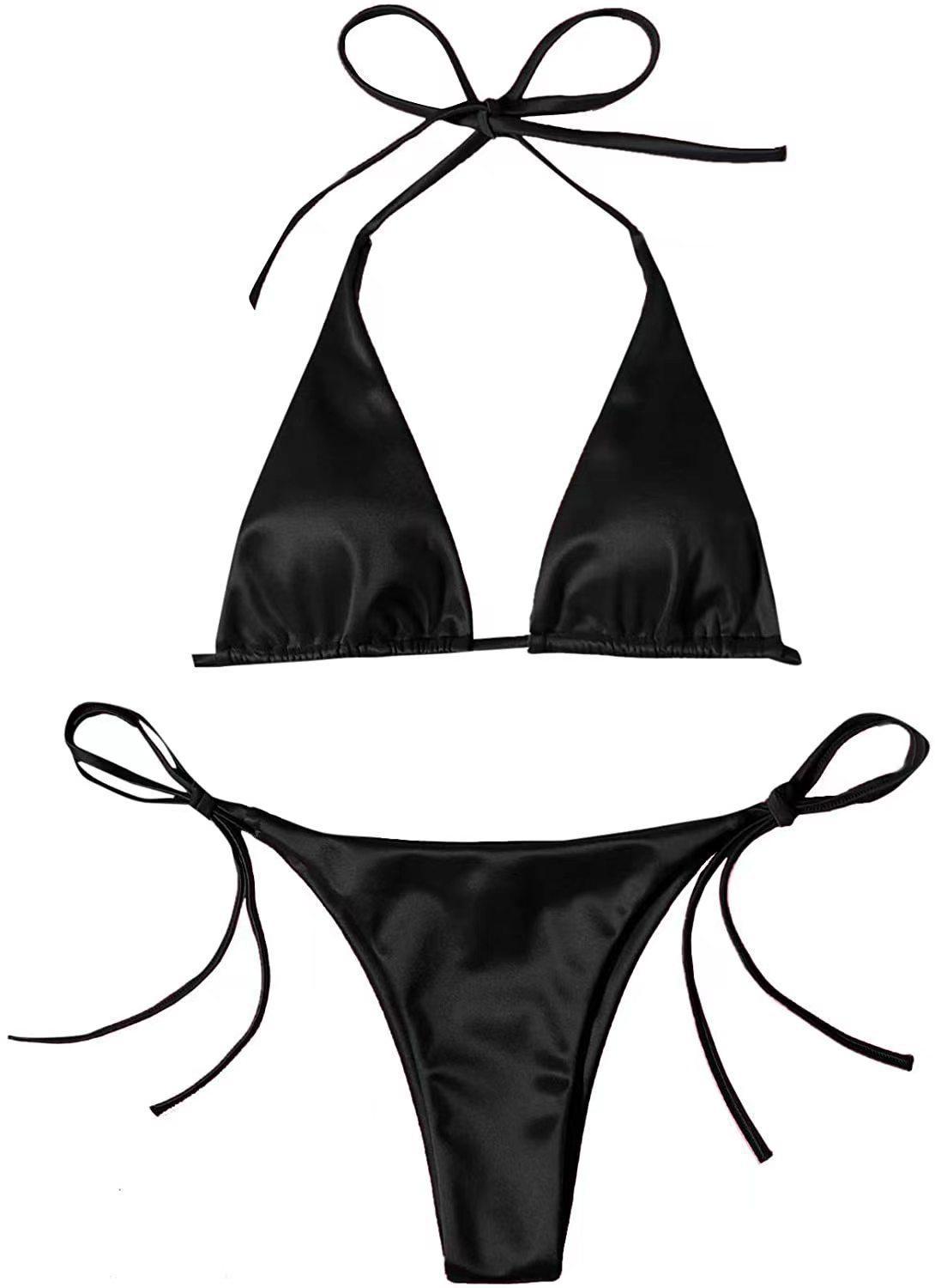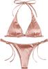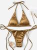 2024 Calzones Brillantes Sexy para Mujer Traje de Baño con Cordones Bikini Sexy Halter Dividido para Bronceado Playa