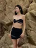 | Traje de baño de tres piezas estilo europeo y americano para mujer, traje de baño de comercio exterior ajustado, falda de nailon, 2025 |
