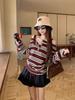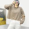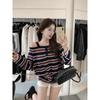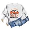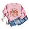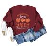 Camiseta básica de otoño de calle a la moda de manga larga con cuello redondo, negra estampada, holgada, tipo jersey