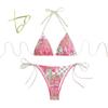 Traje de Baño Bikini Sexy con Abertura y Cordones de Encaje sin Espalda Estampado Multicolor Nuevo Transfronterizo de Exportación Europeo y Americano para Mujer