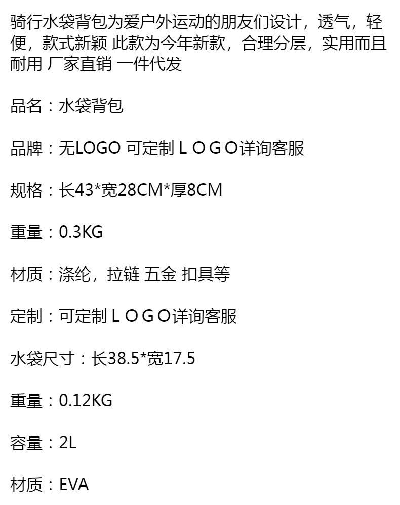 Sky blue water bag 1, Black water bag 1, Light green water bag 1, Dark pink water bag 1, Sky blue water bag 2 ...