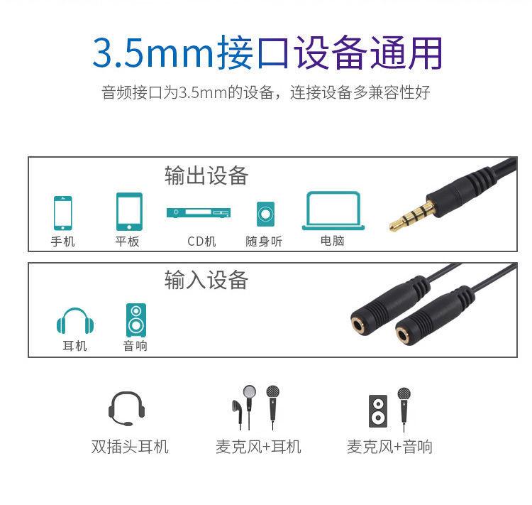 Suministro directo de fábrica de línea de audio uno-dos audio para coche, audio para computadora, auriculares con micrófono dos en uno, línea de audio de 3.5 mm