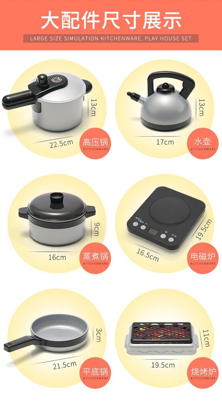 Casa de juegos para niños vajilla simulación sonido y luz cocina de inducción cocinando cocina grande utensilios de cocina juguetes para niños y niñas juego de 36 piezas