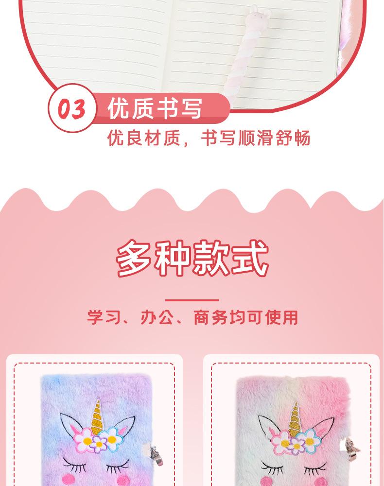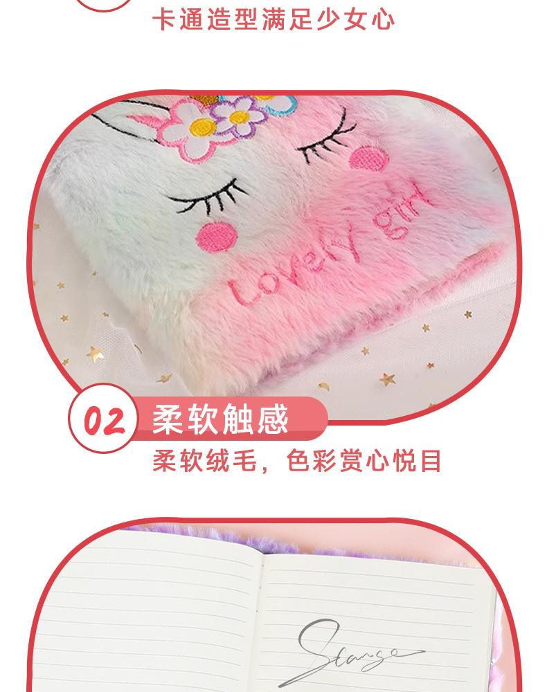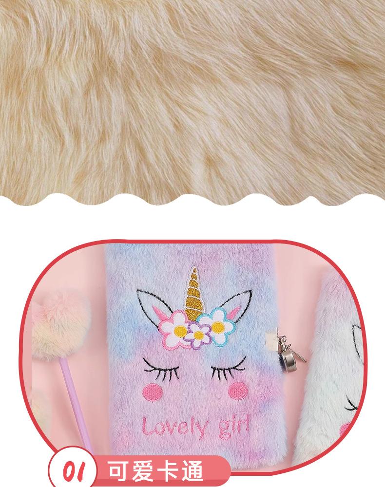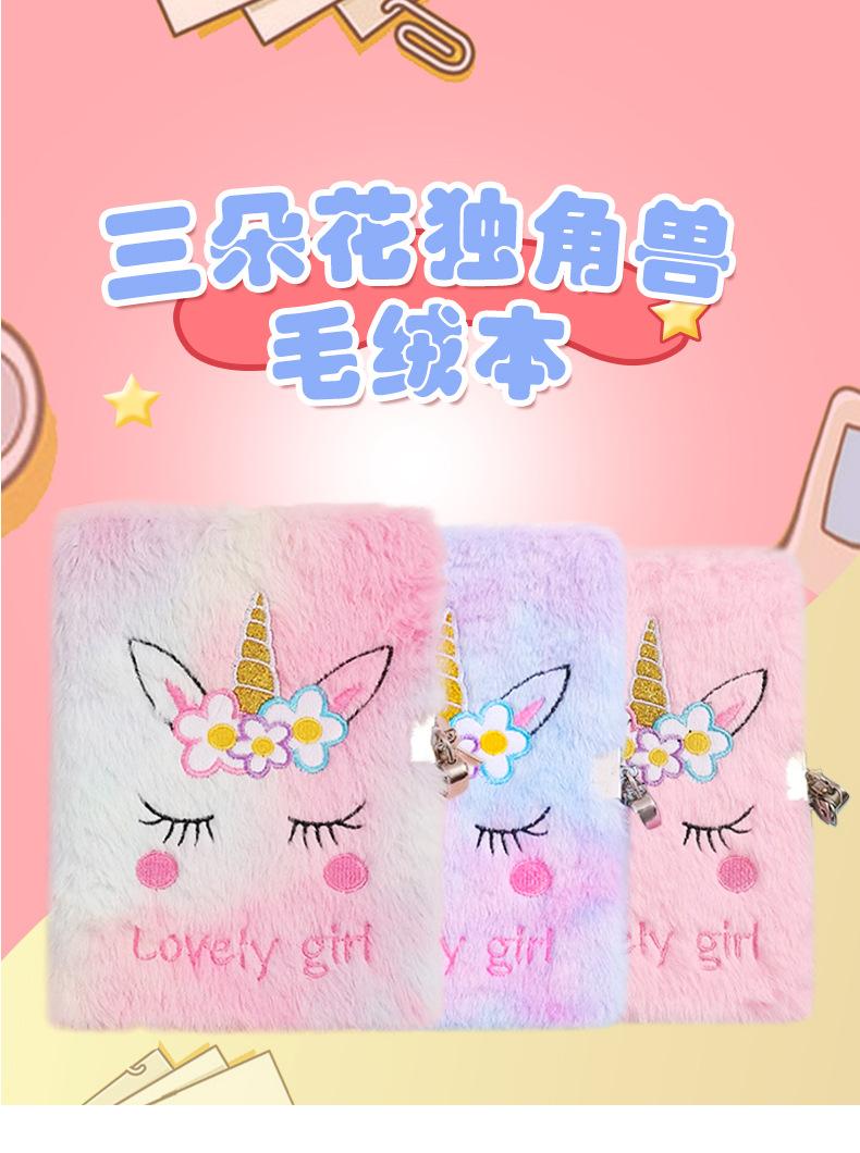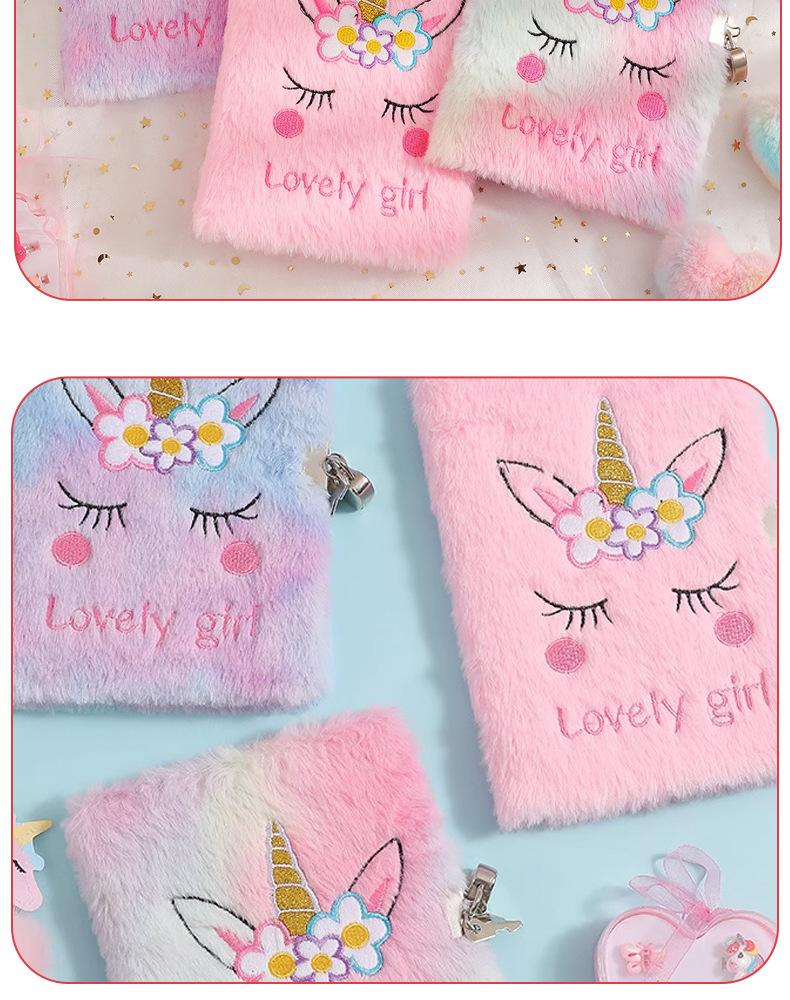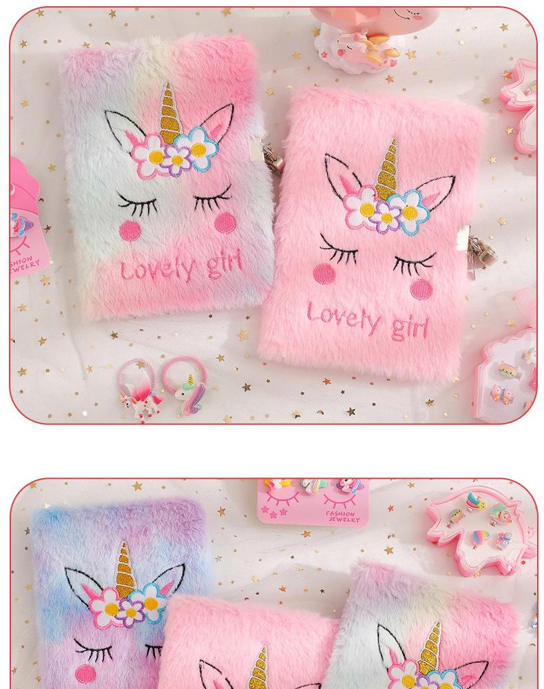 Cuaderno A5 Infantil de Felpa con Candado de Unicornio de Dibujos Animados para Estudiantes Lindo Diario Cultural Libro de Regalo Creativo