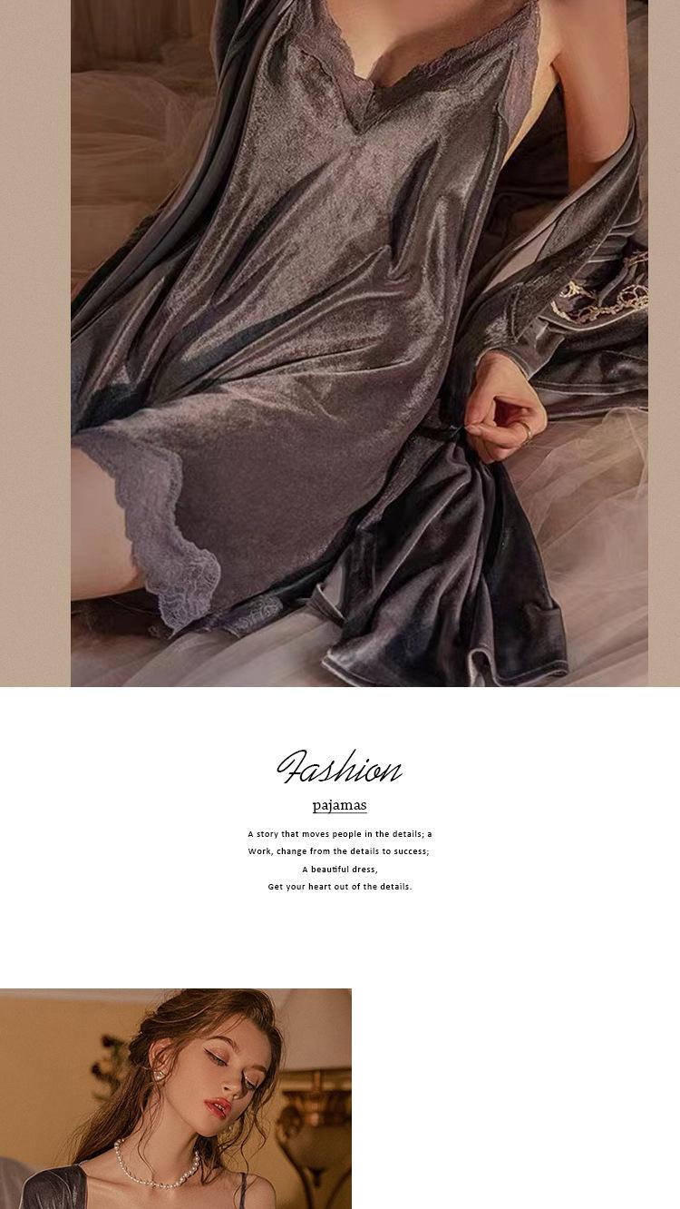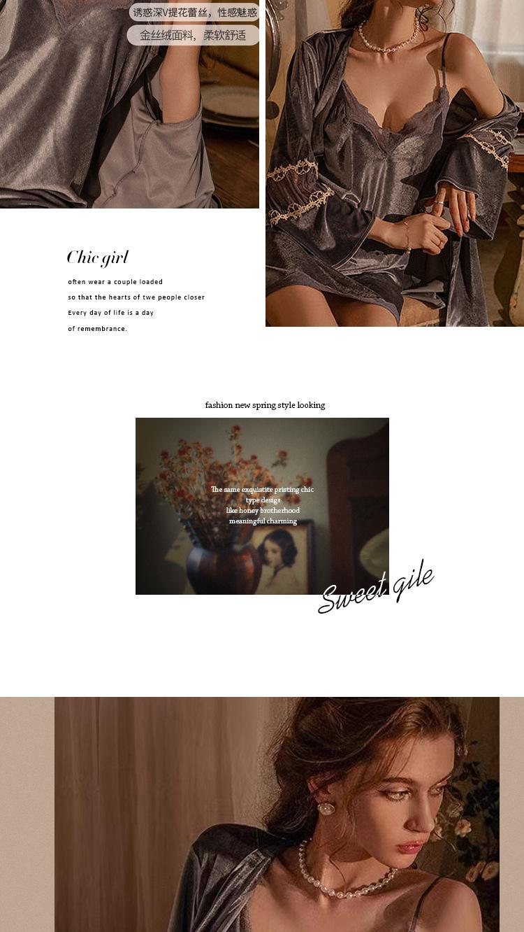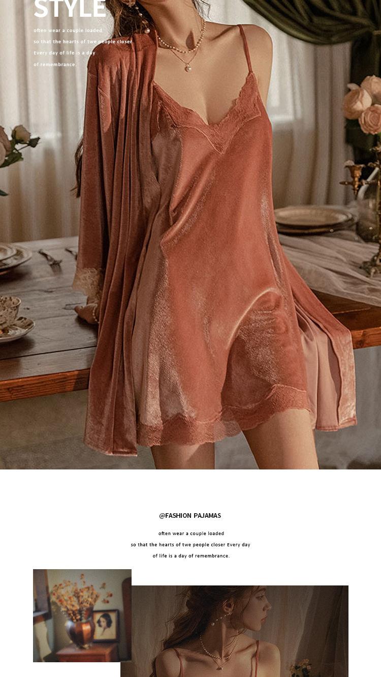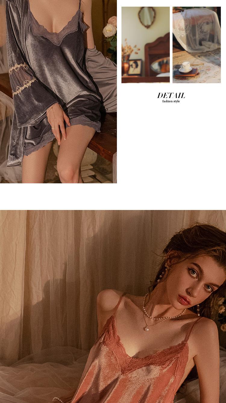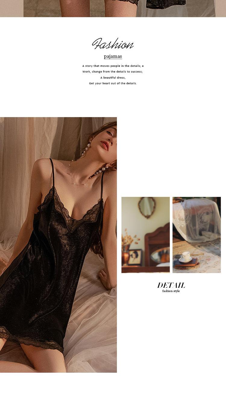 Pijama de Encaje de Terciopelo Dorado para Mujer Emocional de Alta Gama Otoño e Invierno Encaje de Deseo Puro Camisón con Tirantes Ropa para el Hogar