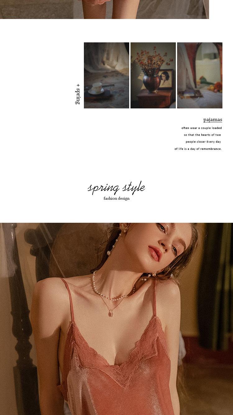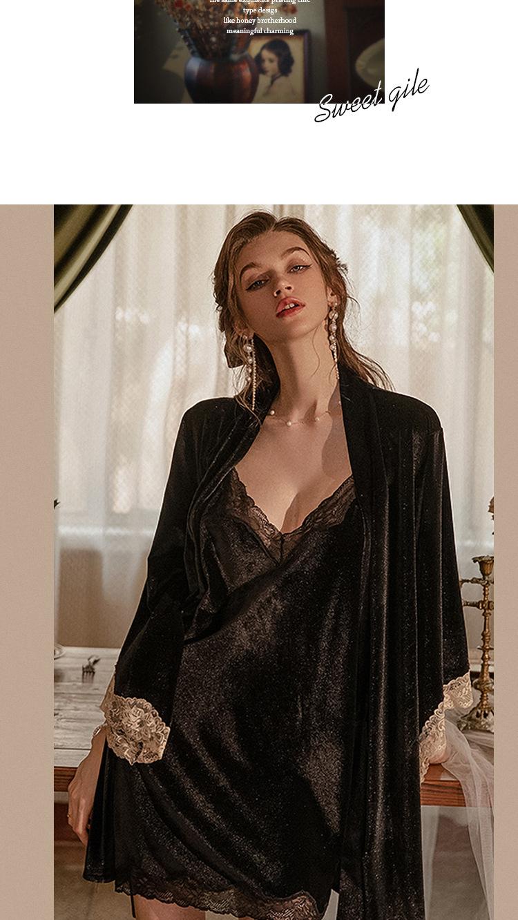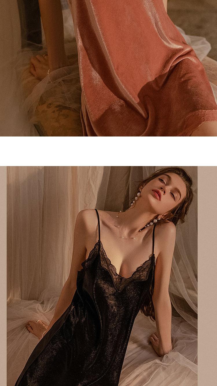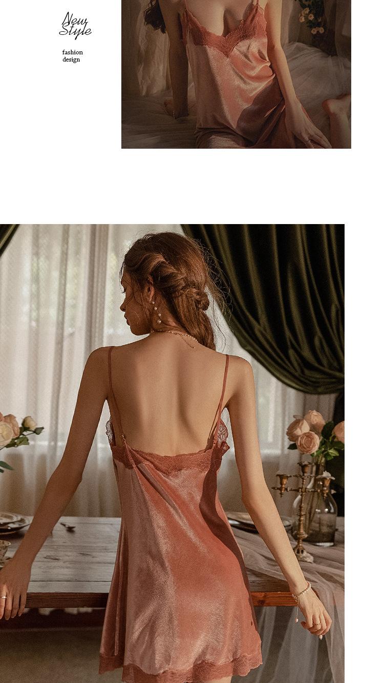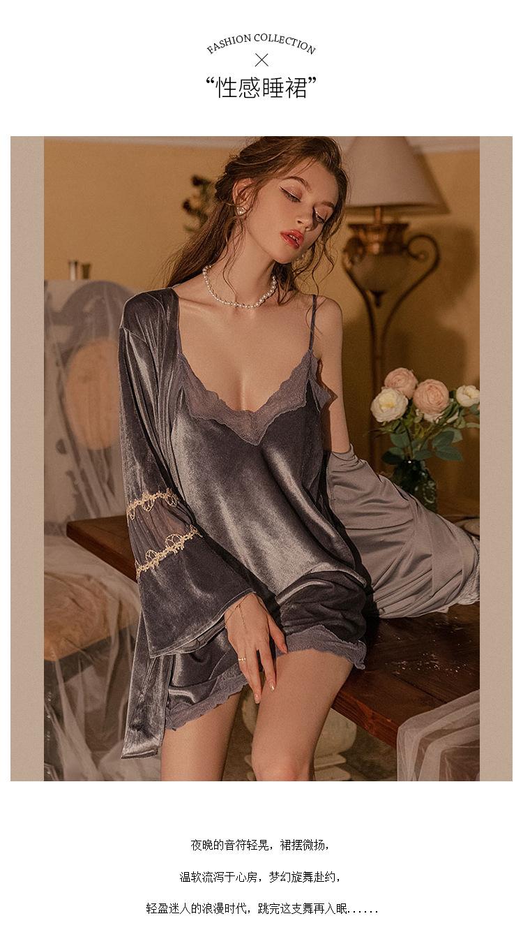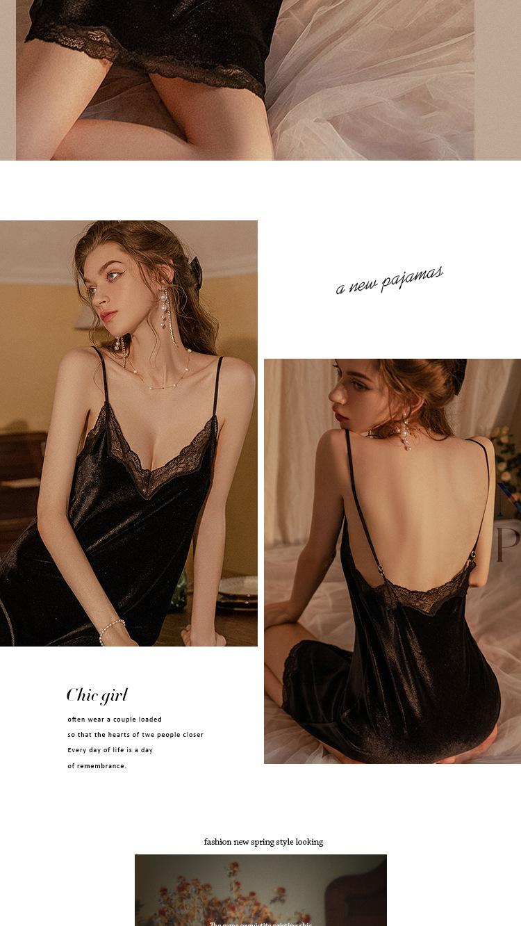 Pijama de Encaje de Terciopelo Dorado para Mujer Emocional de Alta Gama Otoño e Invierno Encaje de Deseo Puro Camisón con Tirantes Ropa para el Hogar