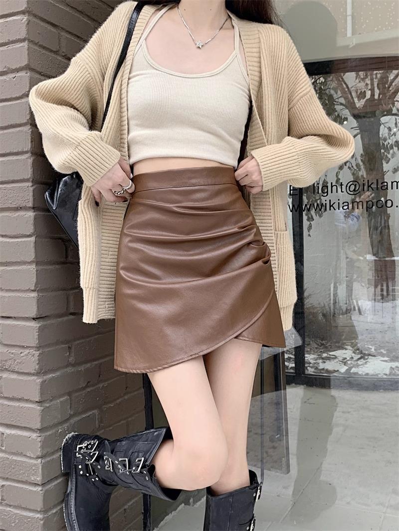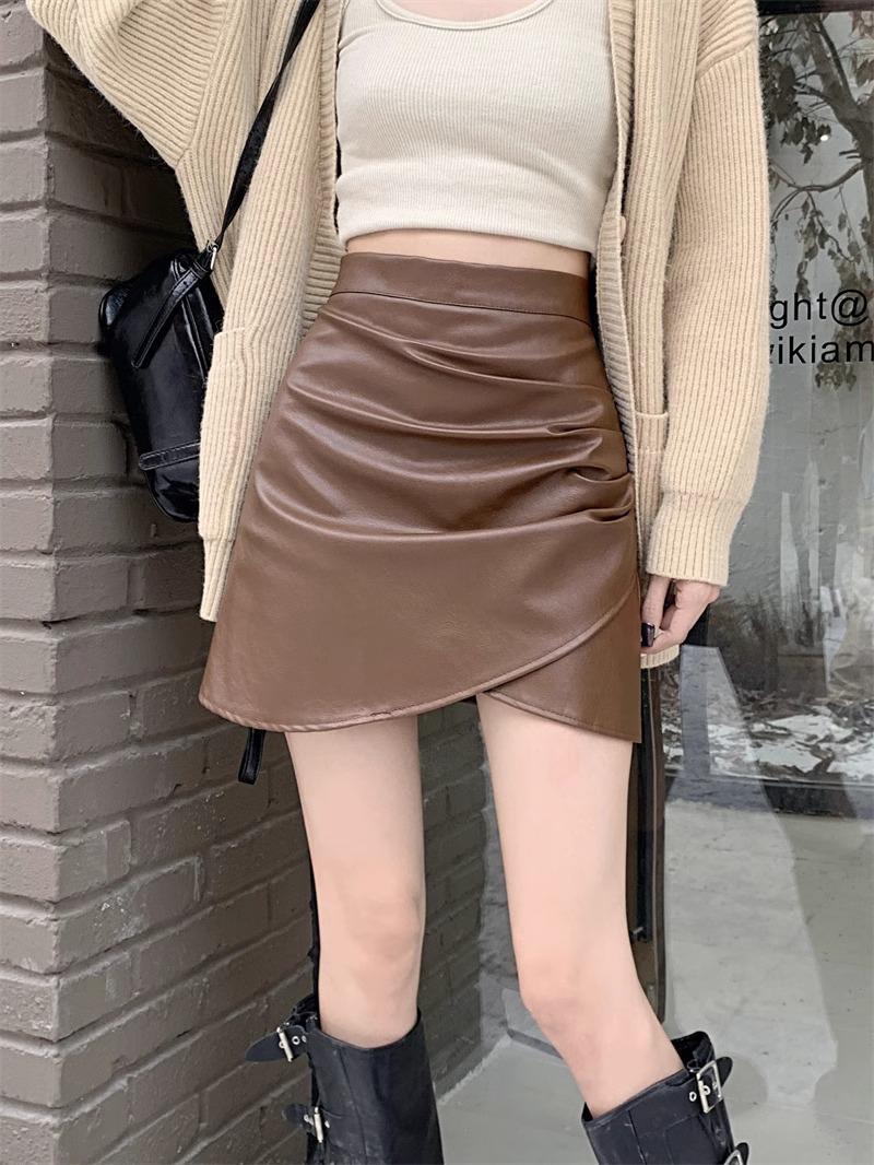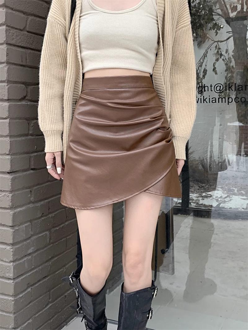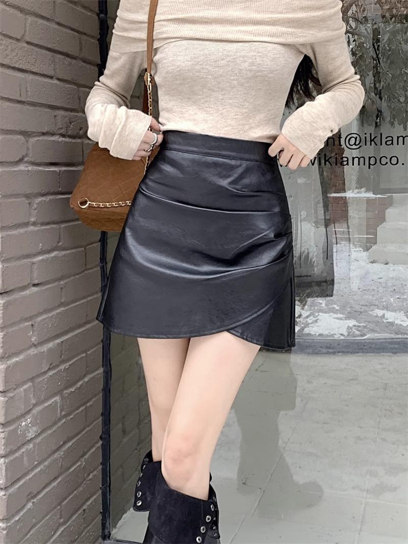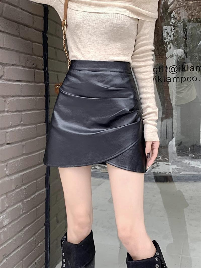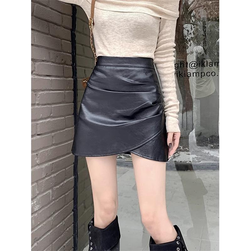 Falda irregular de piel sintética para mujer 2025 otoño e invierno nueva cintura alta negra cadera antideslizante A línea falda corta