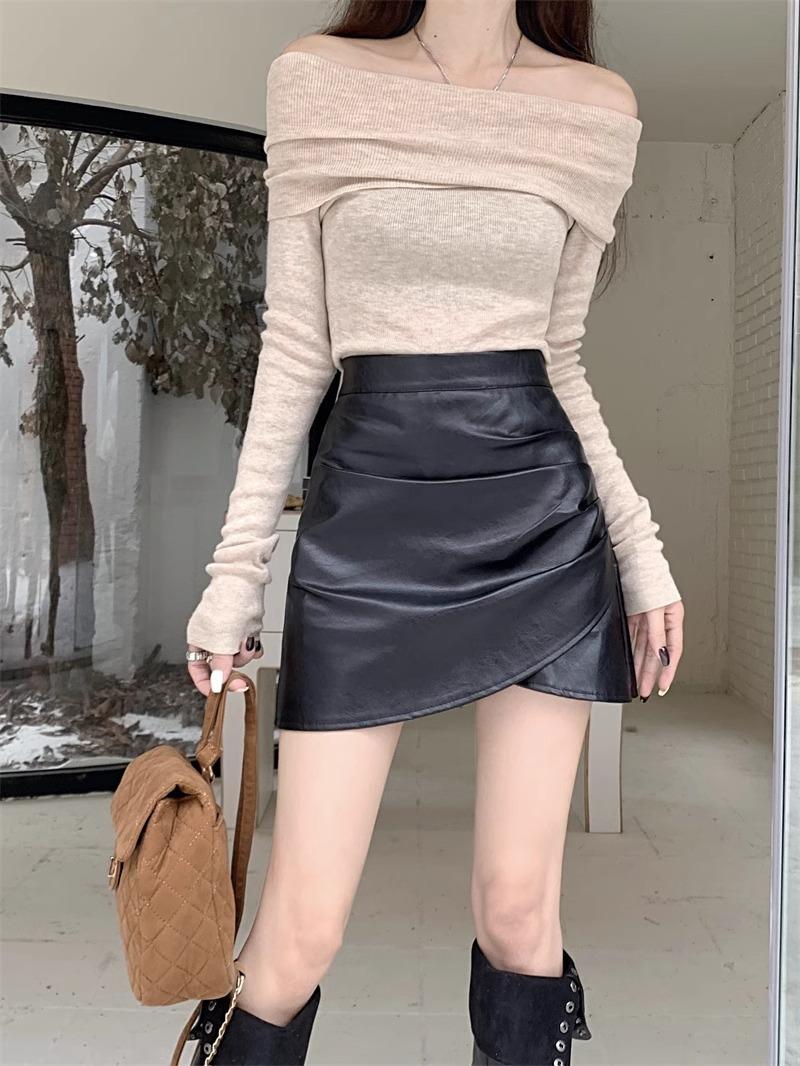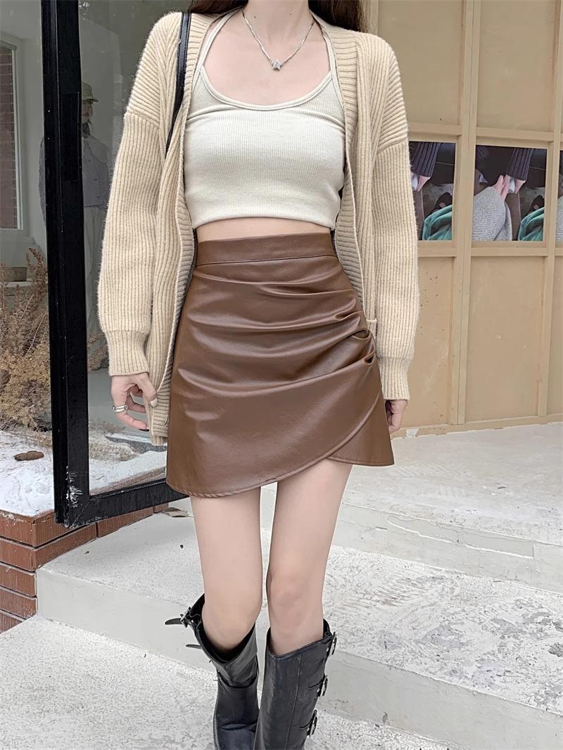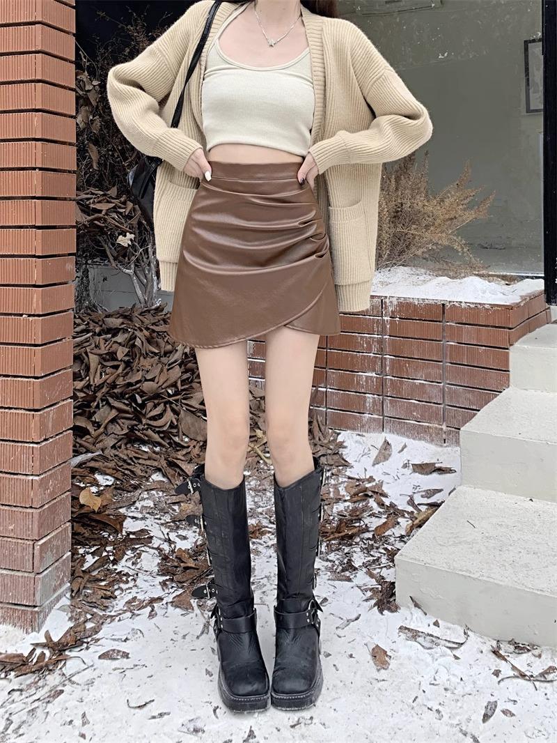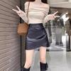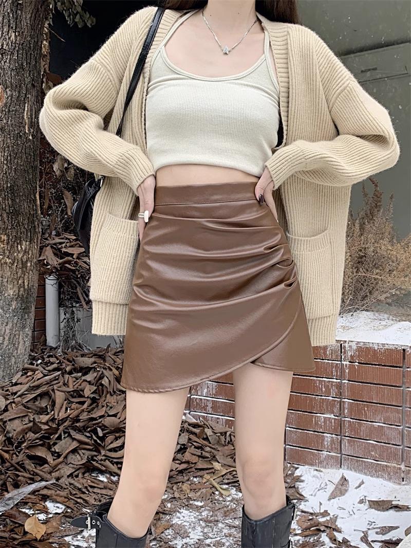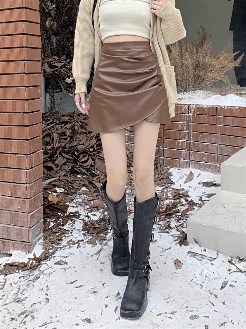 Falda irregular de piel sintética para mujer 2025 otoño e invierno nueva cintura alta negra cadera antideslizante A línea falda corta