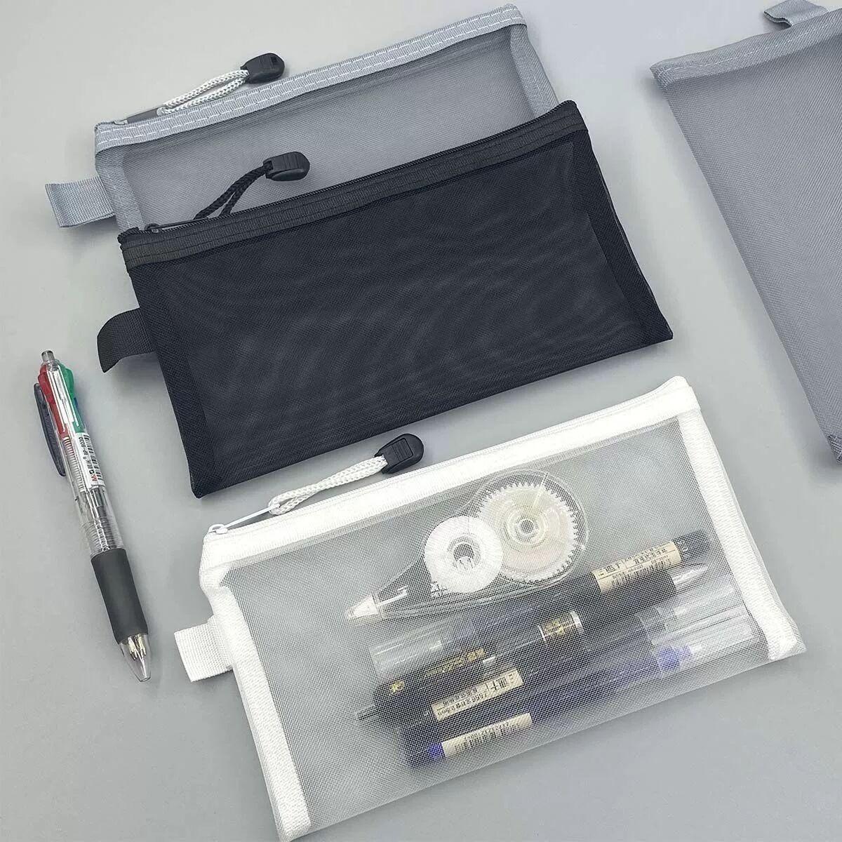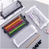 Estuche de malla transparente de gran capacidad con cremallera para estudiantes, examen, estuche portátil para lápices, bolsa para artículos de papelería al por mayor