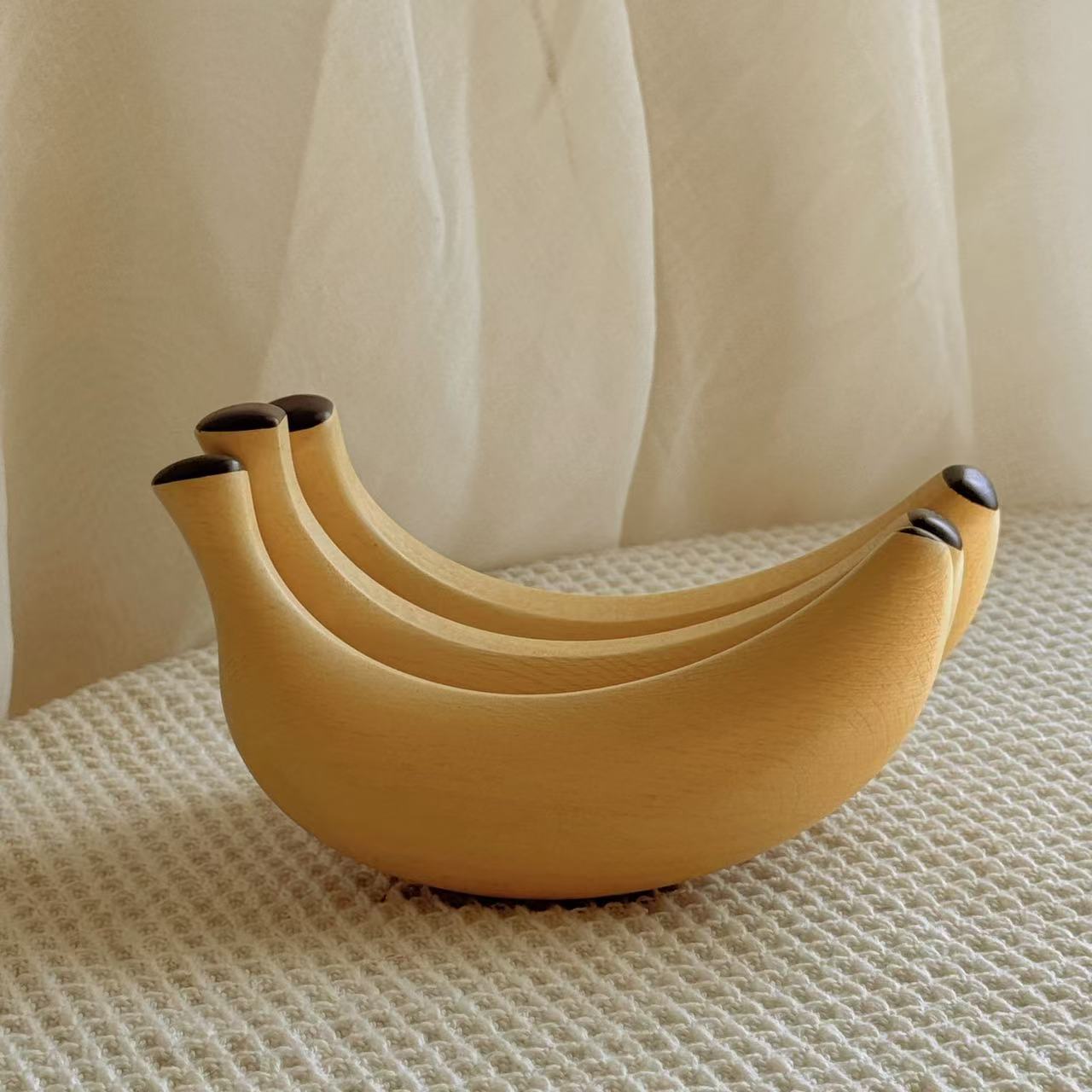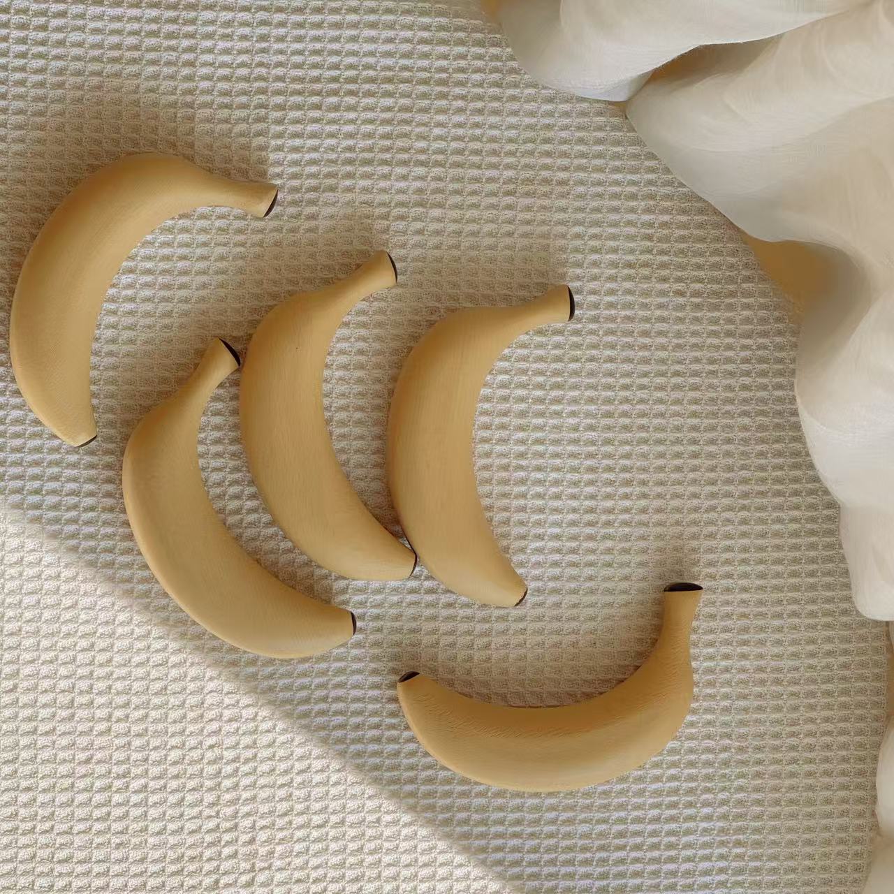 Madera de haya plátano lindo creativo madera juego fruta accesorios para disparar juguete de mano para niños