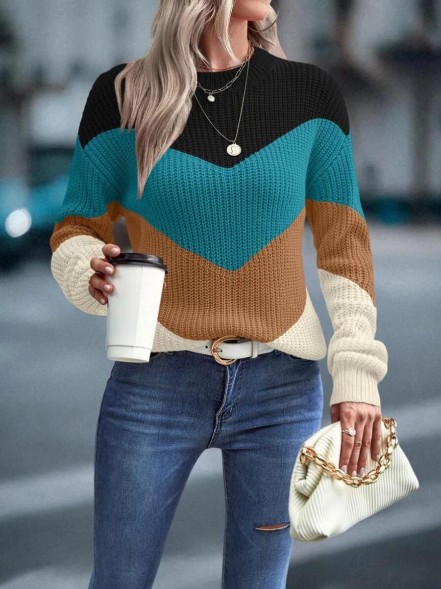 Comercio exterior transfronterizo Amazon Suéter europeo y americano de primavera y otoño a color contrastante 2023 Nuevo suéter de rayas holgado casual para mujer