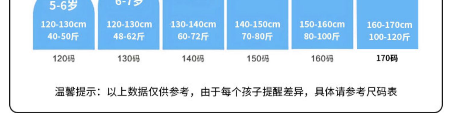 120cm, 130cm, 140cm, 150cm, 160cm, 170cm