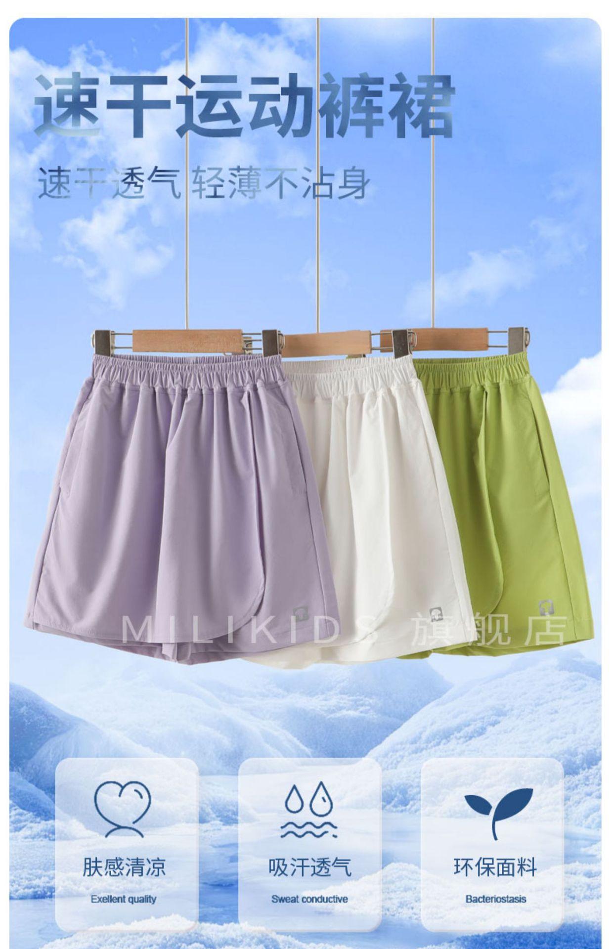 2025 Verano Nuevo Estilo Falda Corta Falso Dos Piezas Shorts Delgados de Verano Secado Rápido Pantalones Cortos Deportivos para Niña