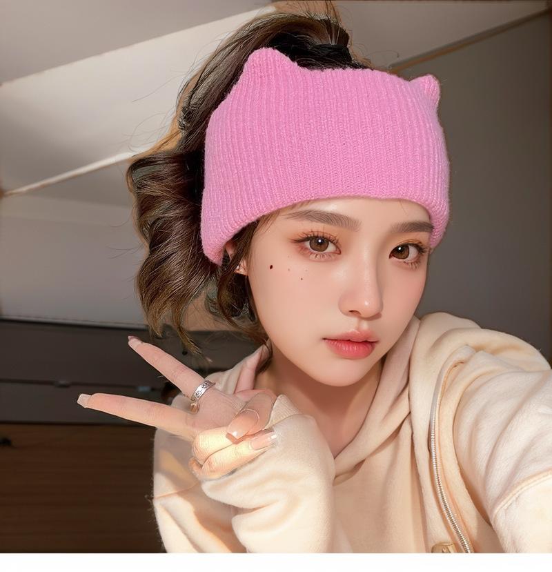 Diadema con Orejas de Gato Lindas Diadema Tejida Borde Ancho Tocado Accesorios para el Cabello Mujer Alta Elasticidad Lavar la Cara Aplicar Mascarilla Diadema Moda