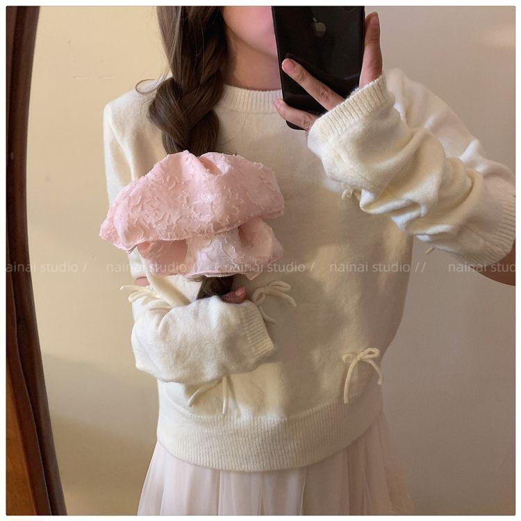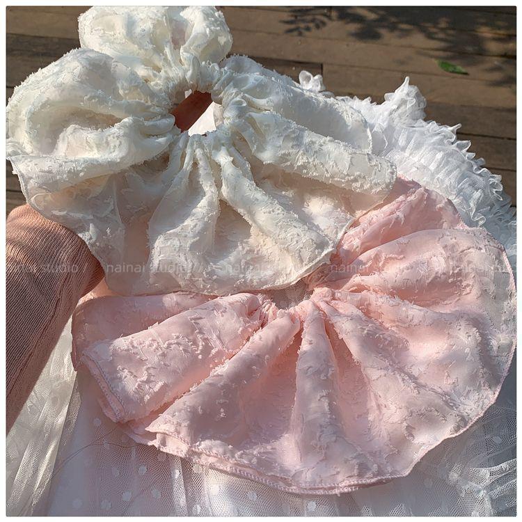Hidden sakura-pink double layer hair tie, Hidden sakura-black double layer hair tie, Hidden sakura-off-white d...