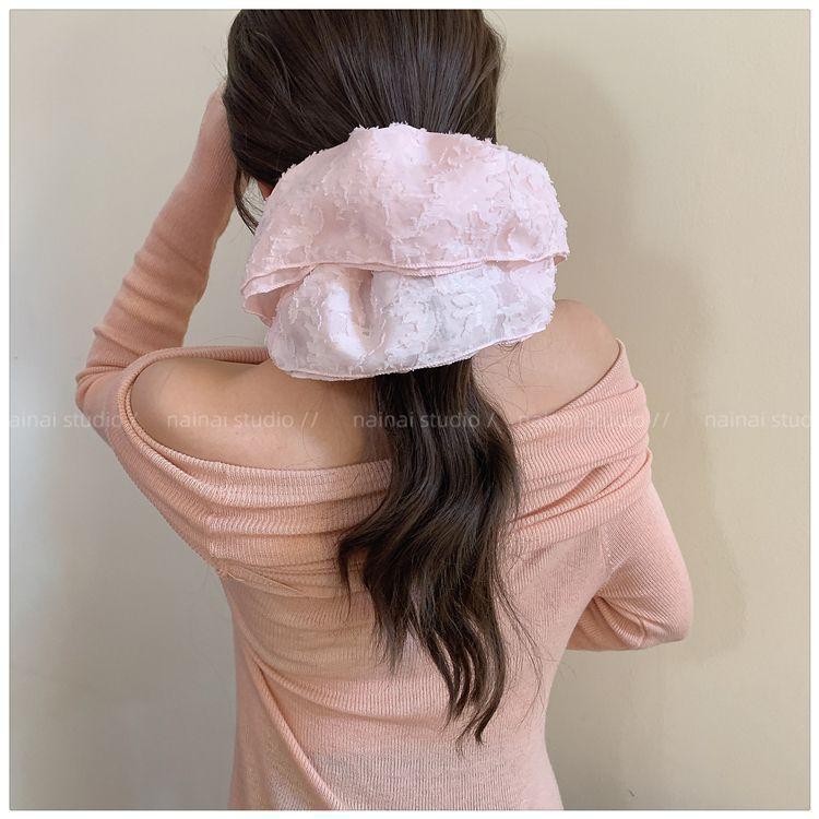Nuevo de principios de primavera ~ ¡súper grande! Rosa Corazón de Niña Anillo para el Cabello de Intestino Grueso Accesorios para el Cabello Moño Bajo Cuerda para el Cabello Flor Cuerda para el Cabello