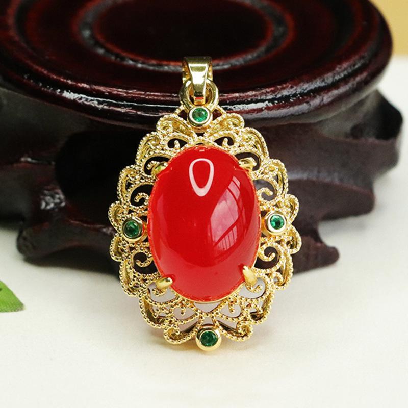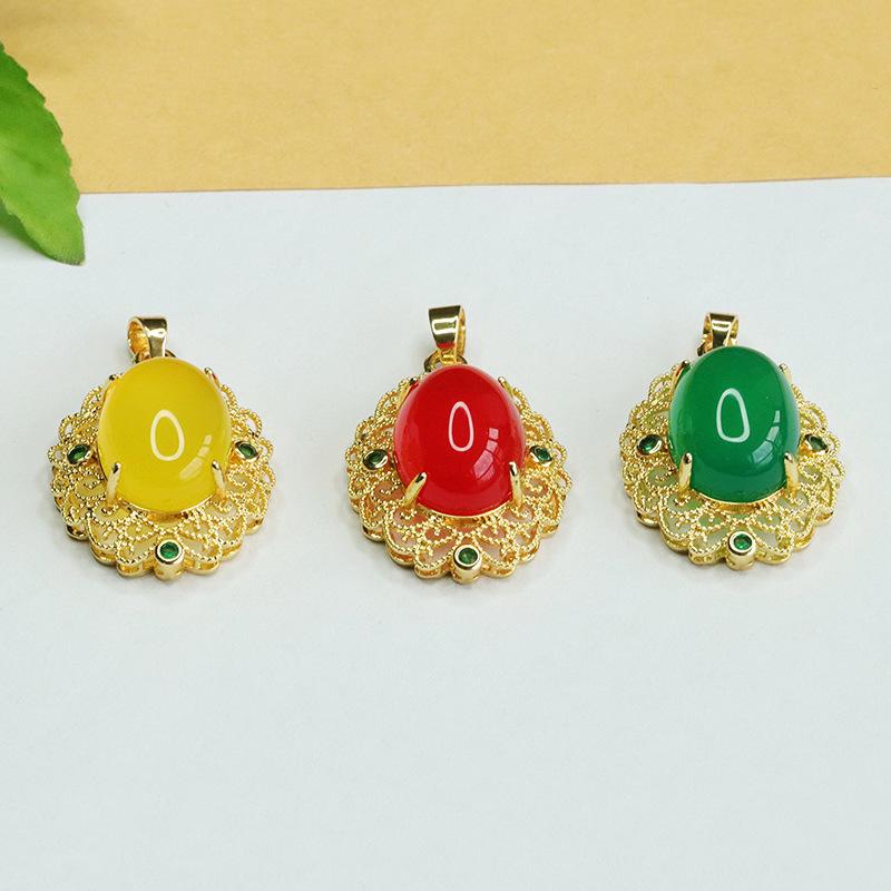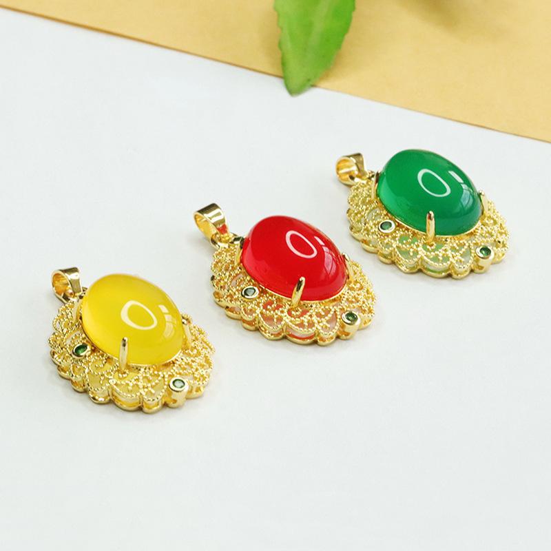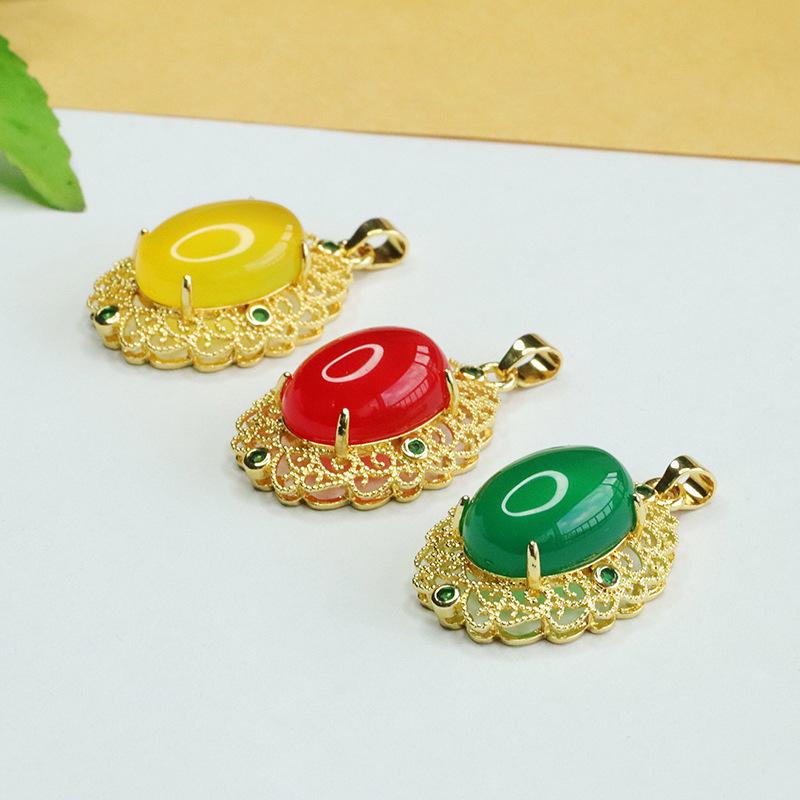 Colgante de Ágata Roja Imitación de Moda Collar de Calcedonia Amarilla y Verde para Mujer Joyería Retro Estilo Corte para Mujer Explosiones de Bienestar en Vivo