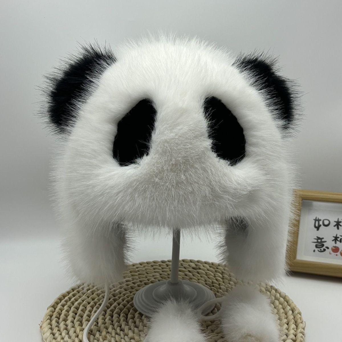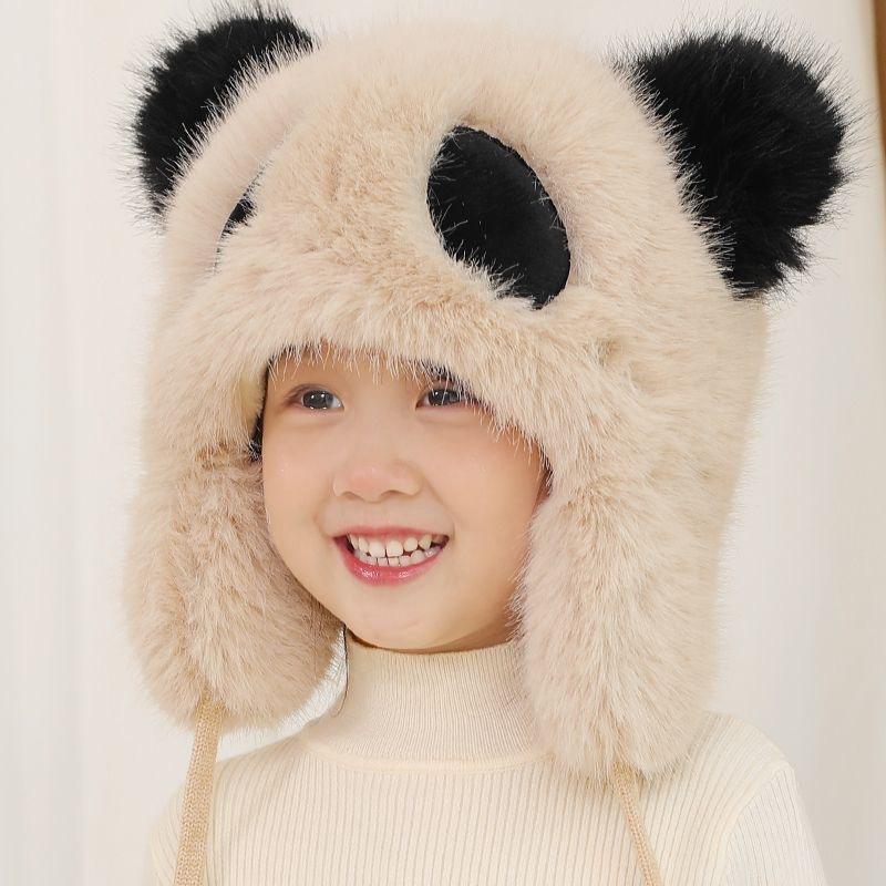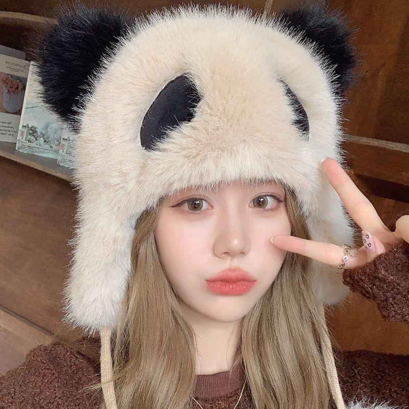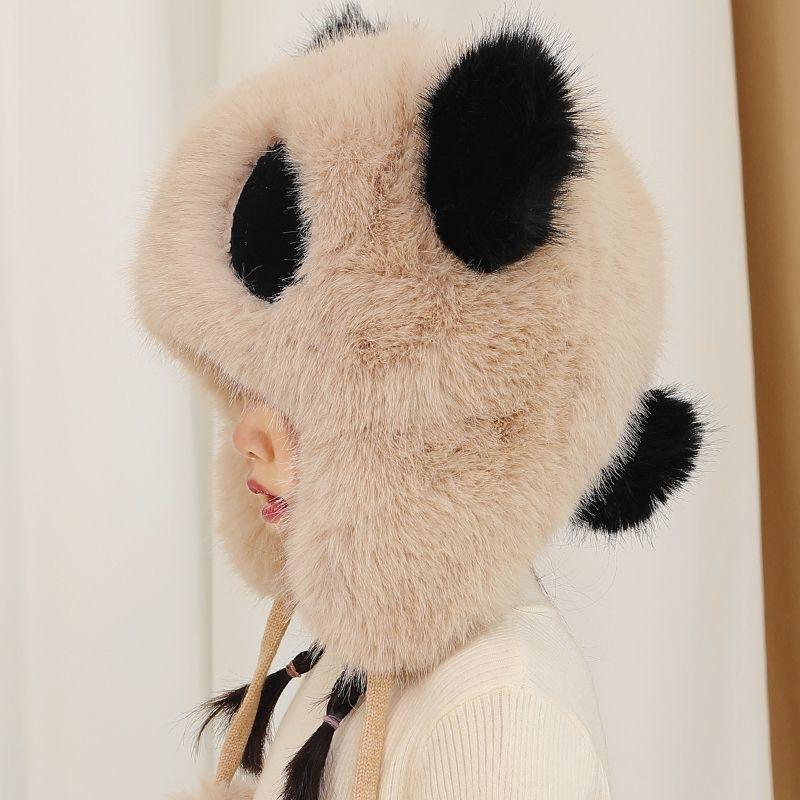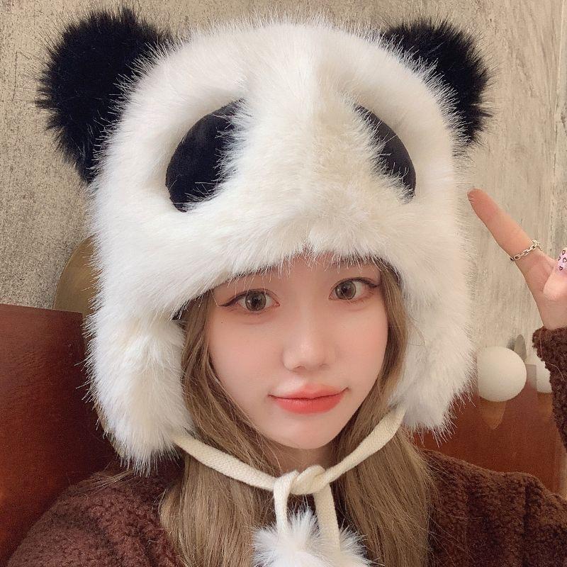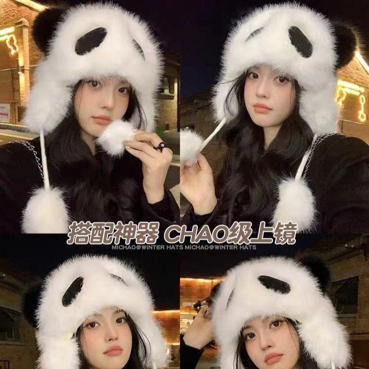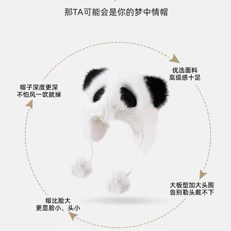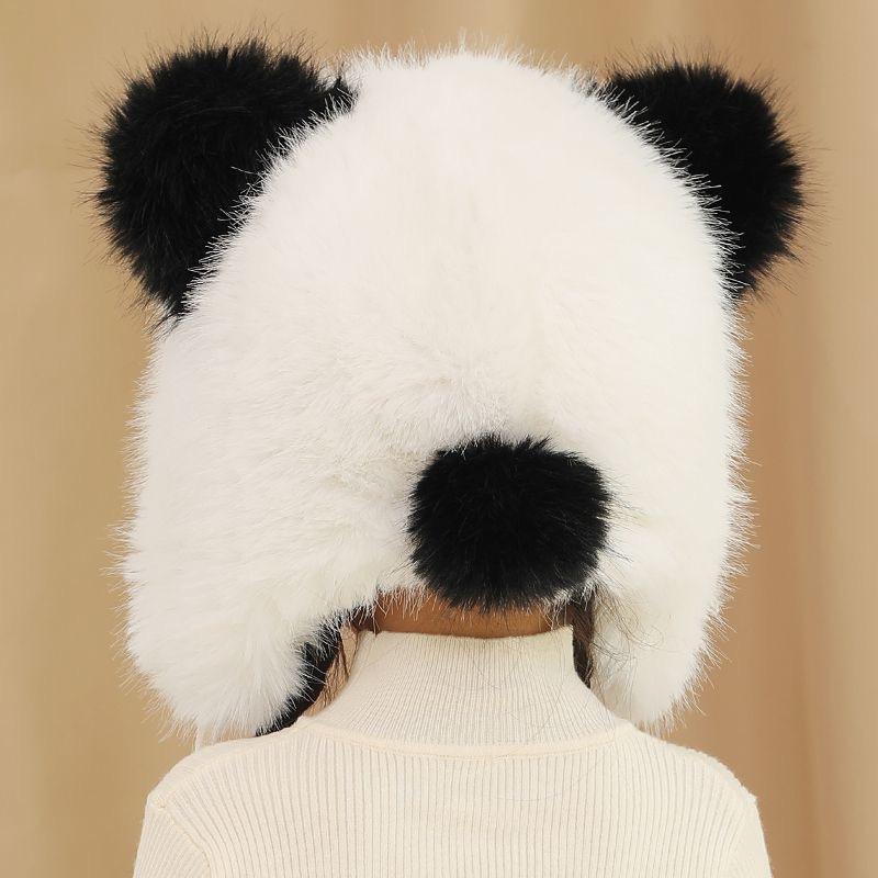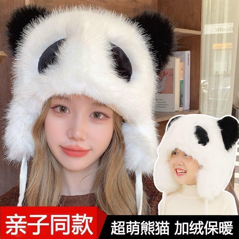 Sombrero de Felpa de Panda 2024 Lindo Dibujo Animado Padre-Hijo Protección para las Orejas Peludo Cálido Invierno a Prueba de Viento Gorro para la Cabeza para Lei Feng