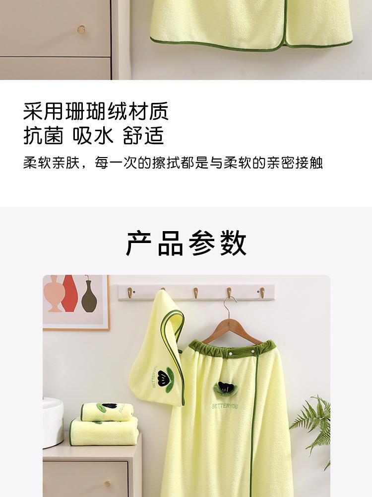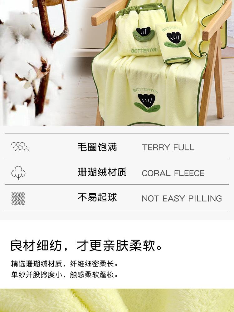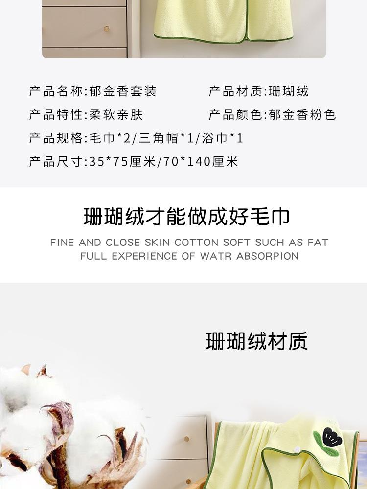 Towel 35*75cm, Triangular hat 25*65cm, Bath towel 70*140cm, Bath skirt 75*135cm