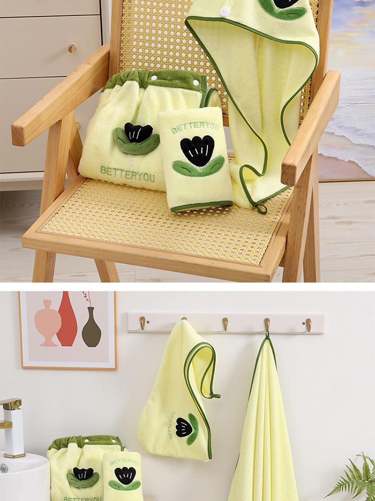 2025 nueva falda de baño de cuatro piezas gruesa suave absorbente forro polar de coral toalla tulipán toalla gorro para secar el cabello mayoreo