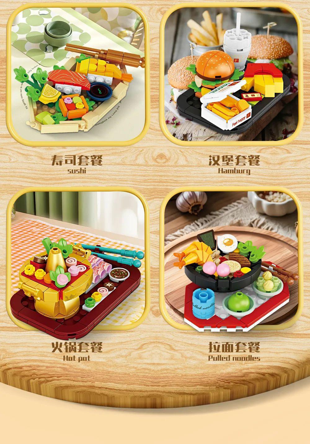 Fangcheng Set de Comida Especial de Producto Nuevo Sushi Hamburguesa Olla Caliente Modelo Ensamblado para Niños Adornos Creativos Juguetes para Niños