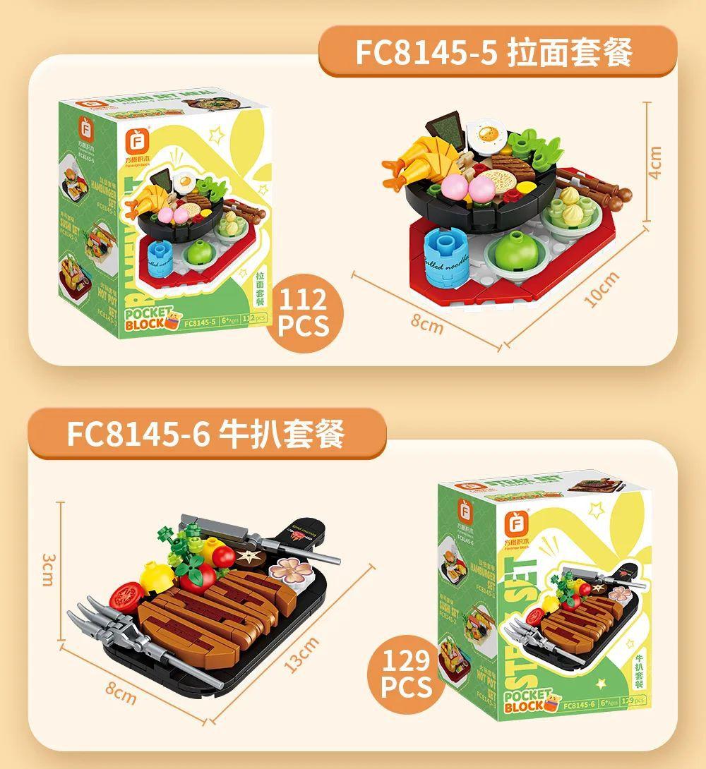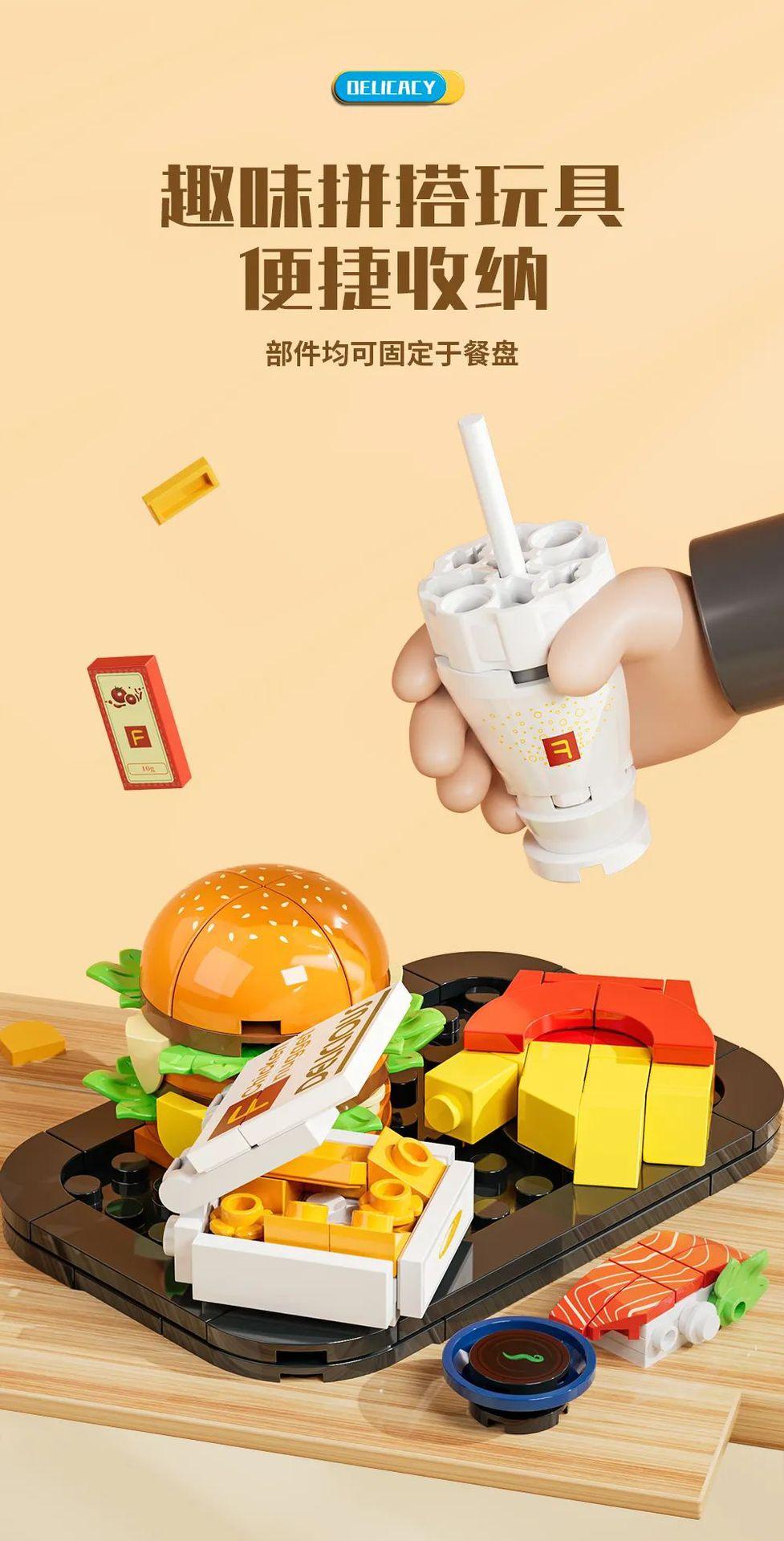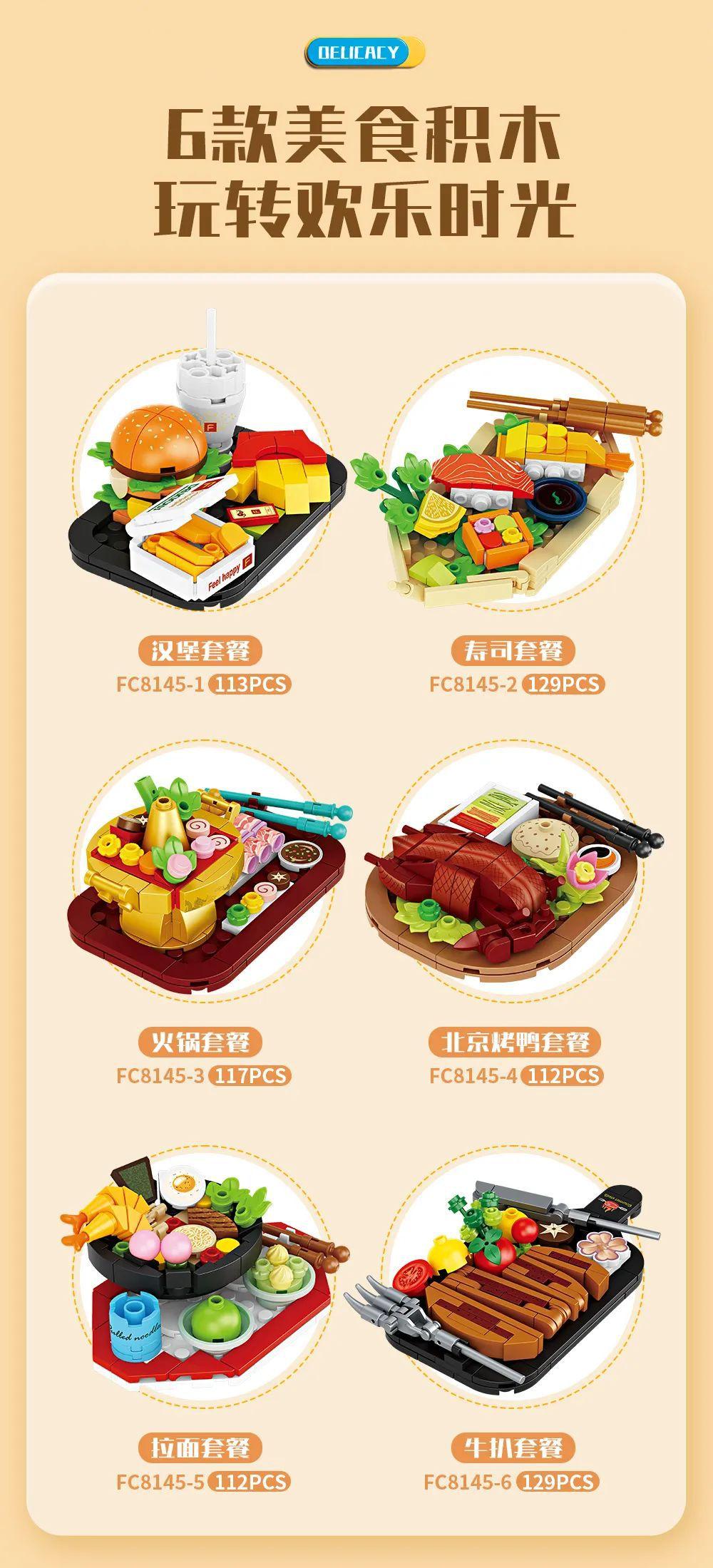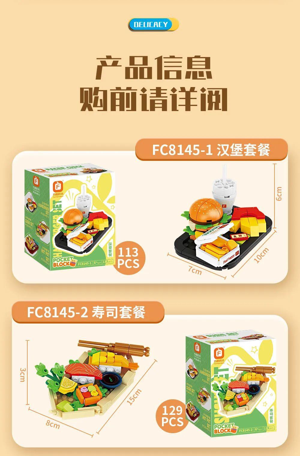 Fc8145 food package 6 types [712 particles], Fc8145-1 hamburger set [113 particles], Fc8145-2 sushi set [129 p...