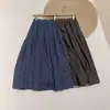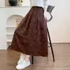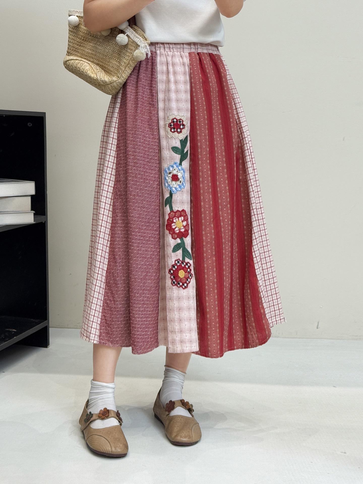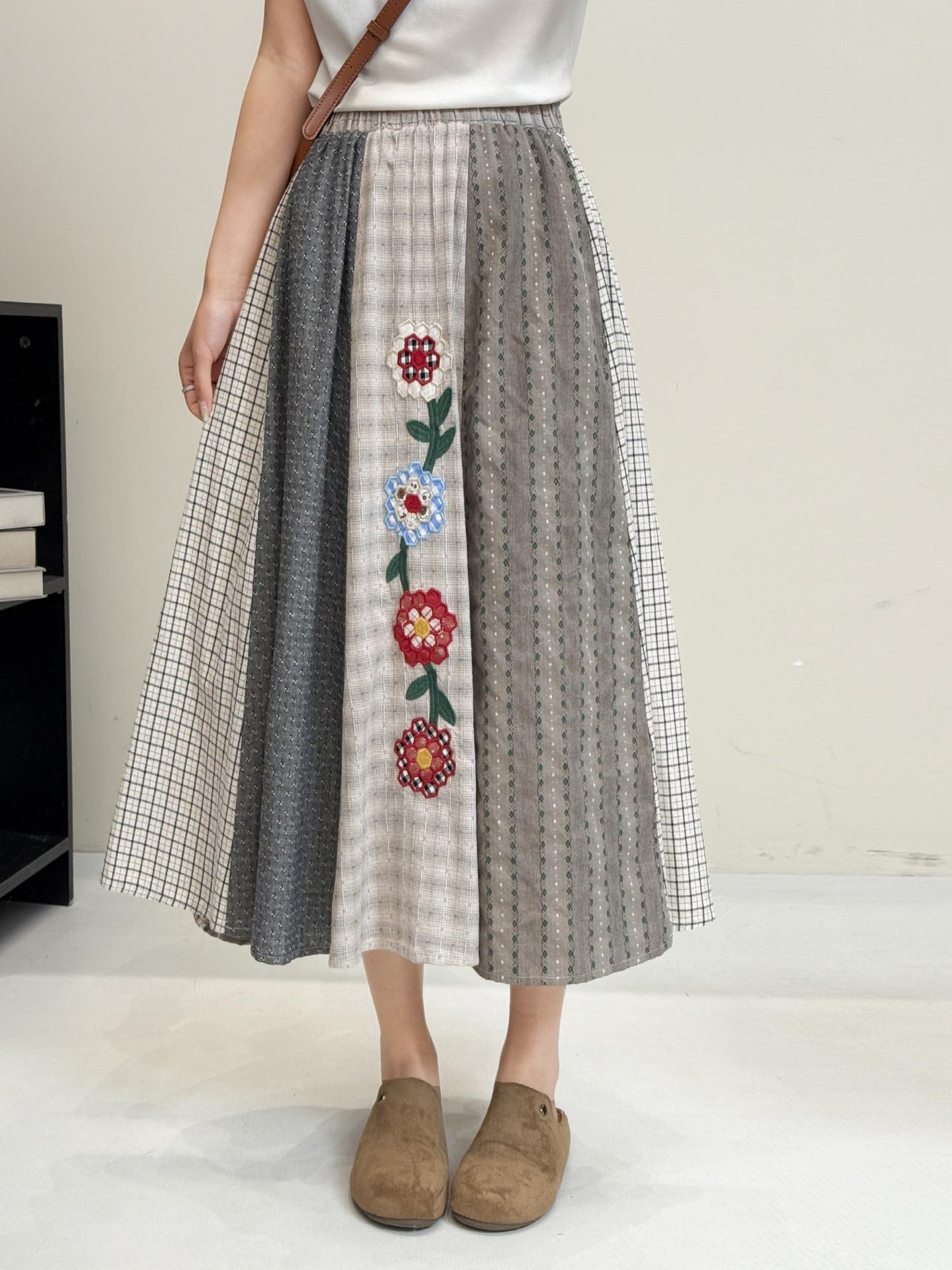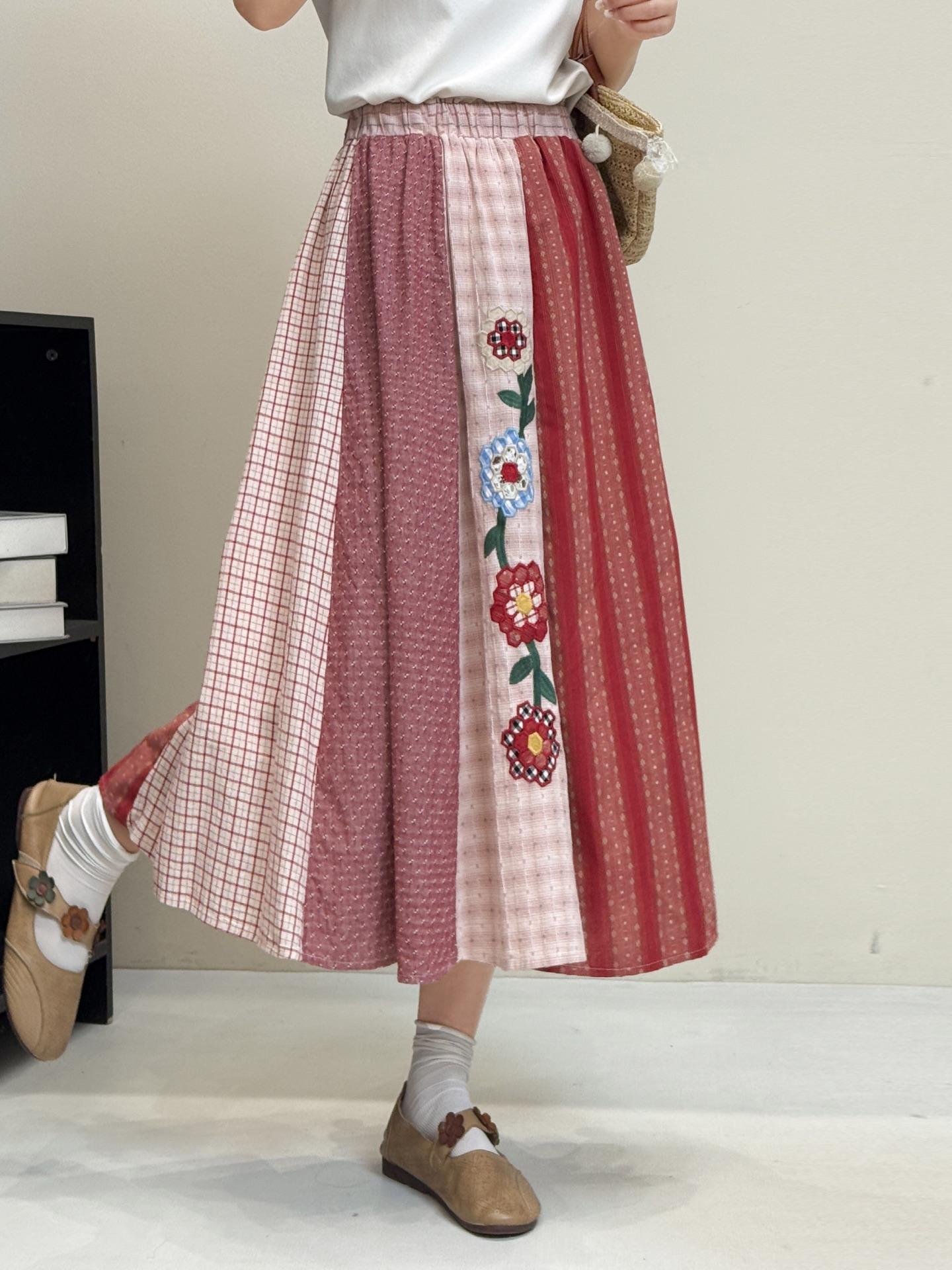 2025 Nueva Falda Midi de Algodón y Lino con Empalme Retro Bordado para Chica Mori, Adelgazante y Dulce, Versátil