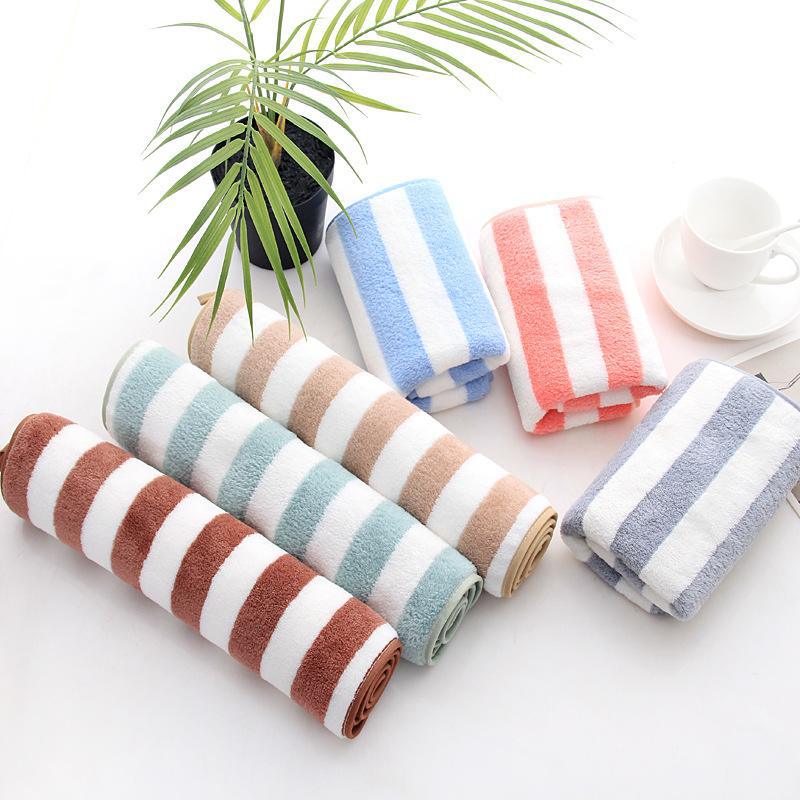 Toalla de forro polar coral para lavar la cara absorbente que no suelta pelusa a rayas para el hogar adulto limpieza de cabeza secado rápido toalla facial de baño