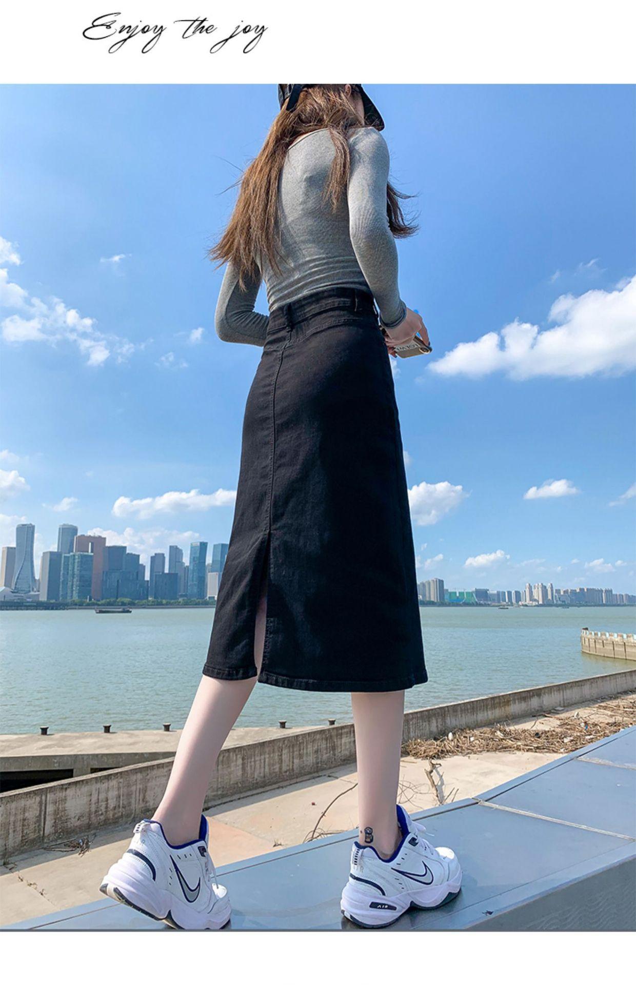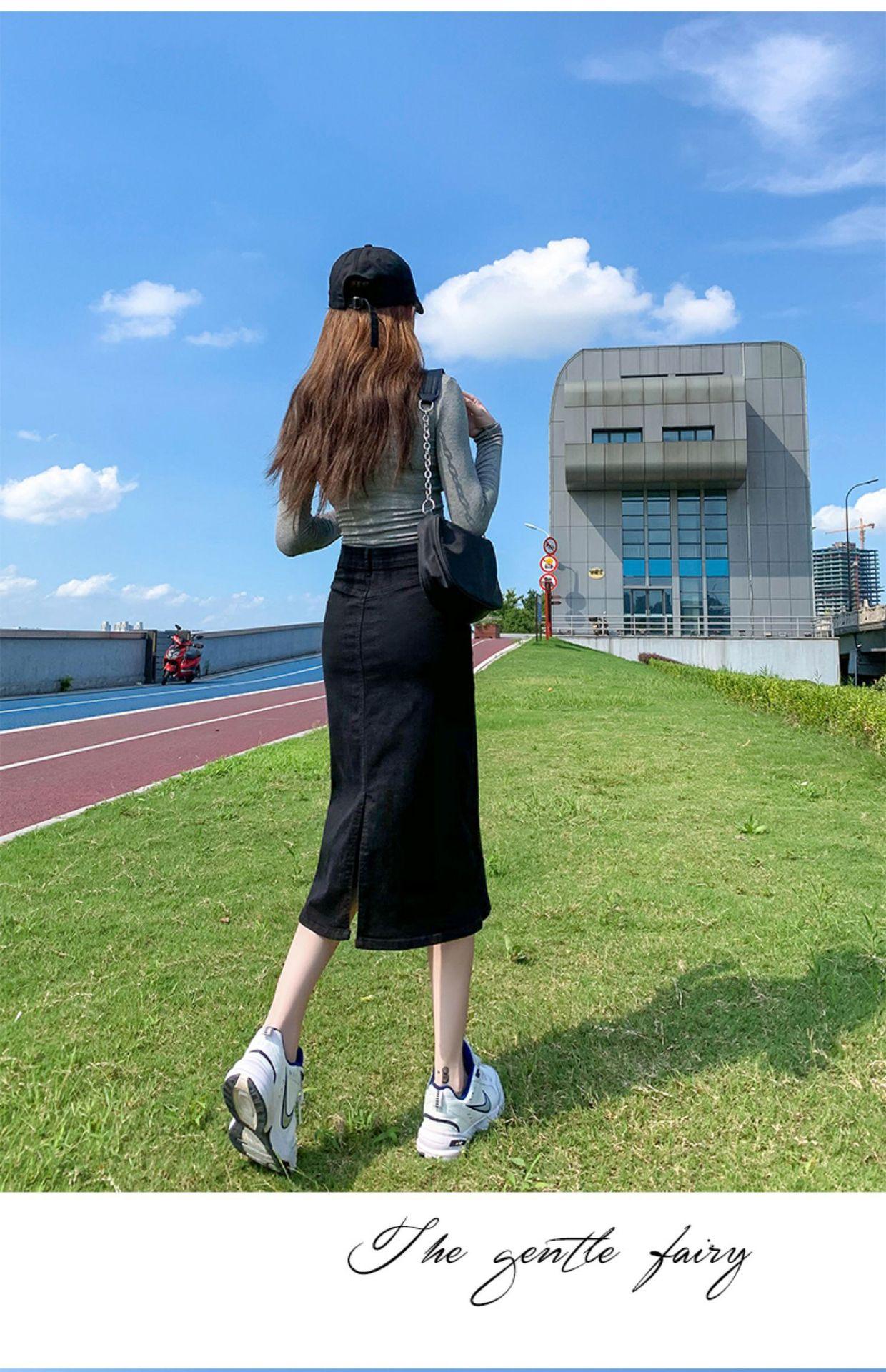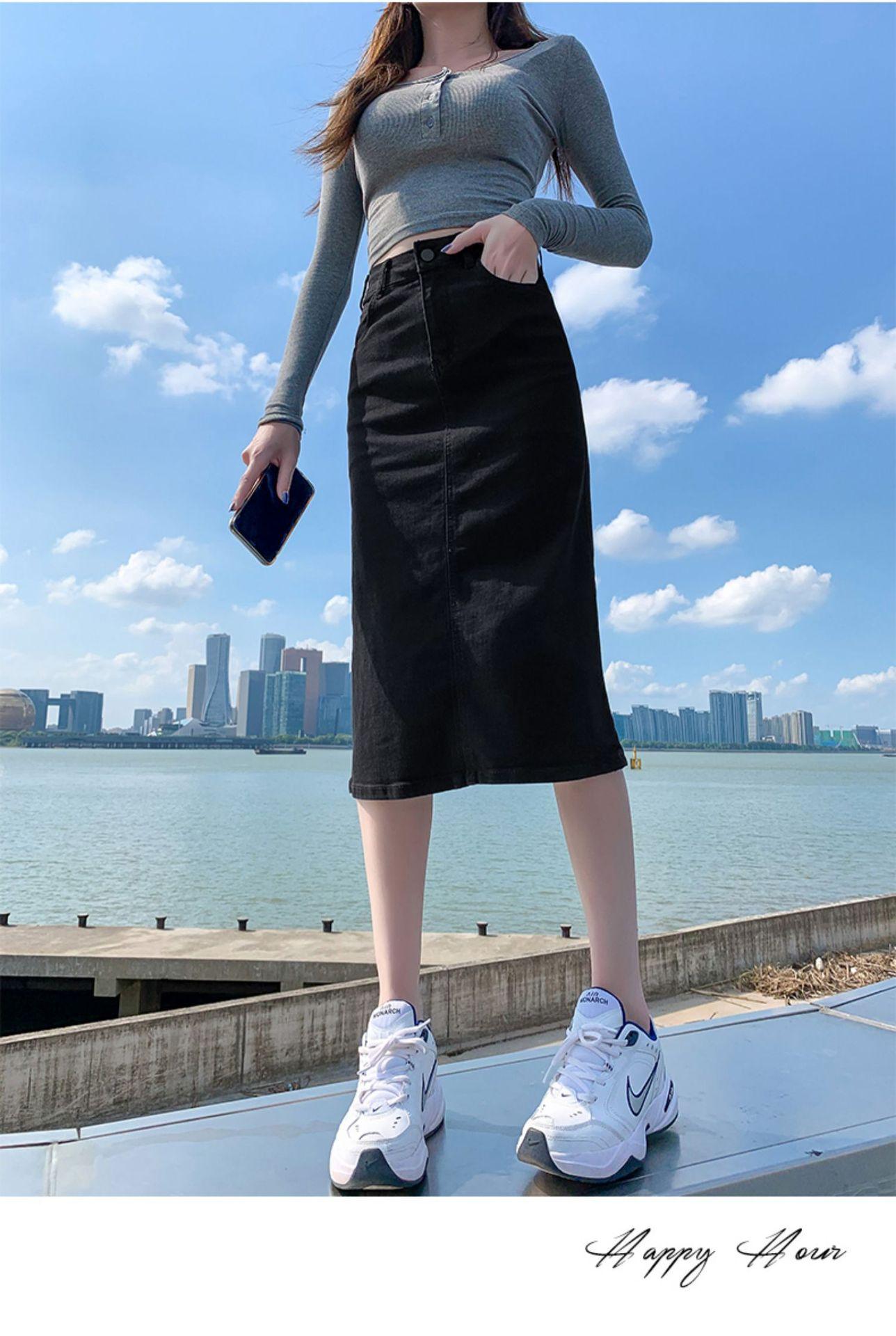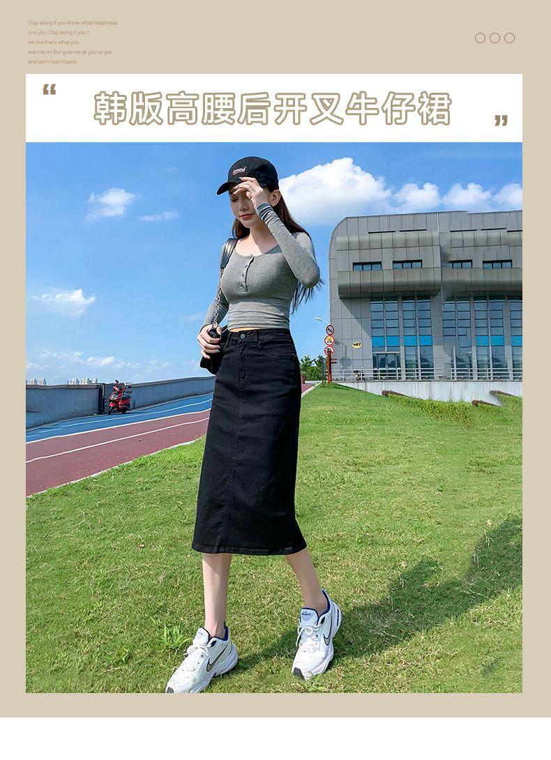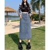 Falda de mezclilla con abertura de cintura alta para mujer 2025 Nueva falda de verano pequeña línea A falda larga retro que cubre las caderas