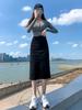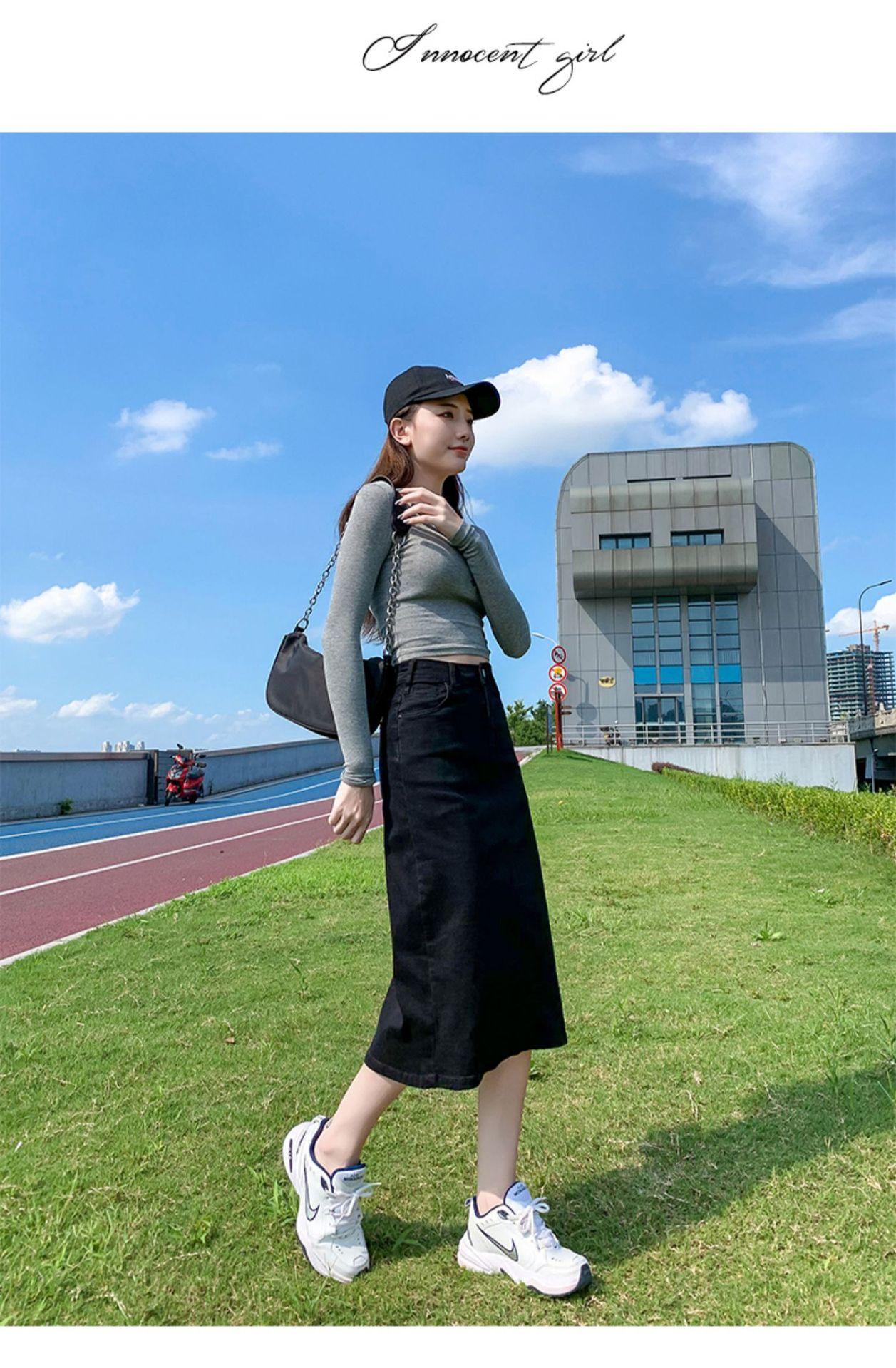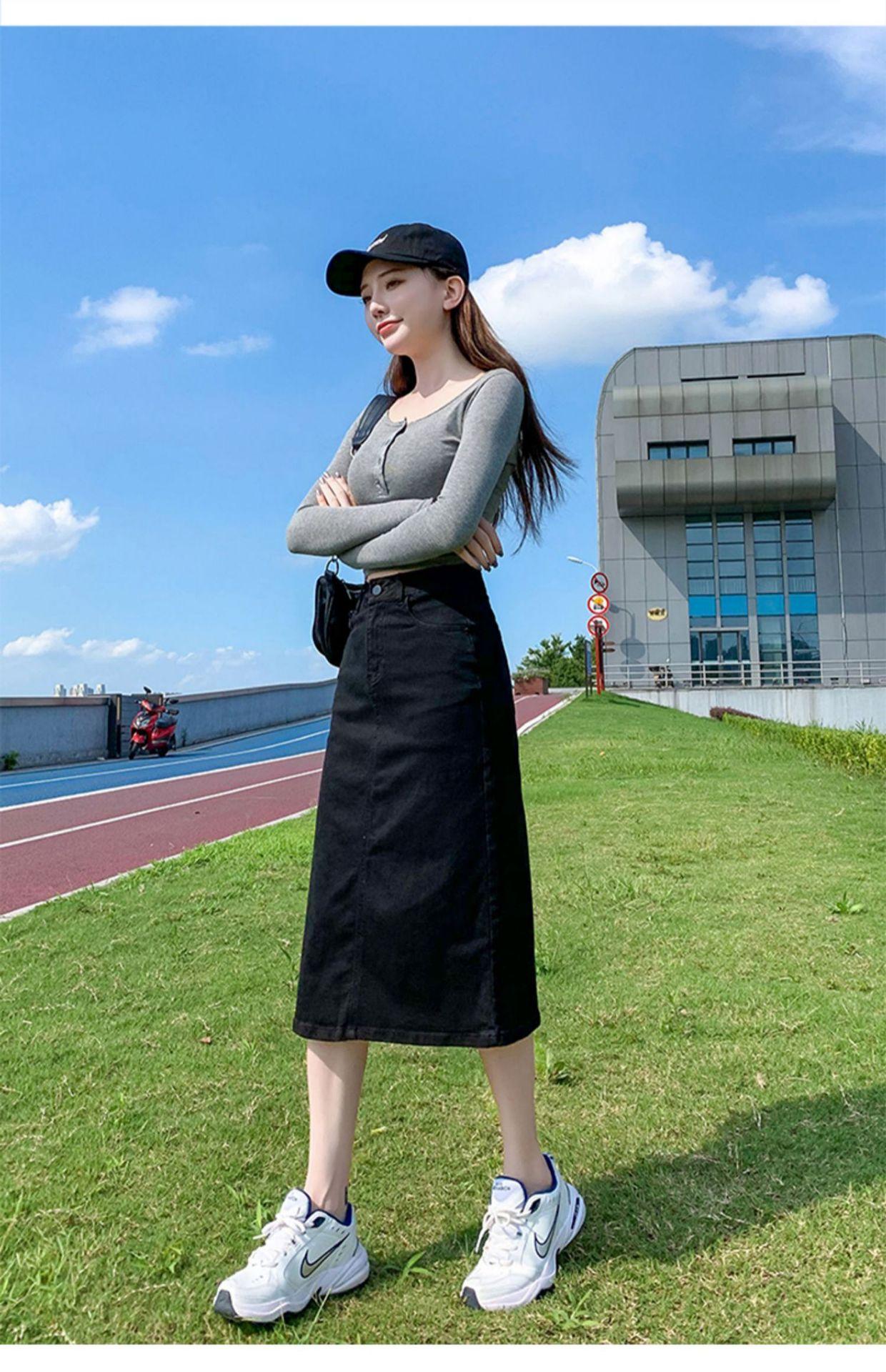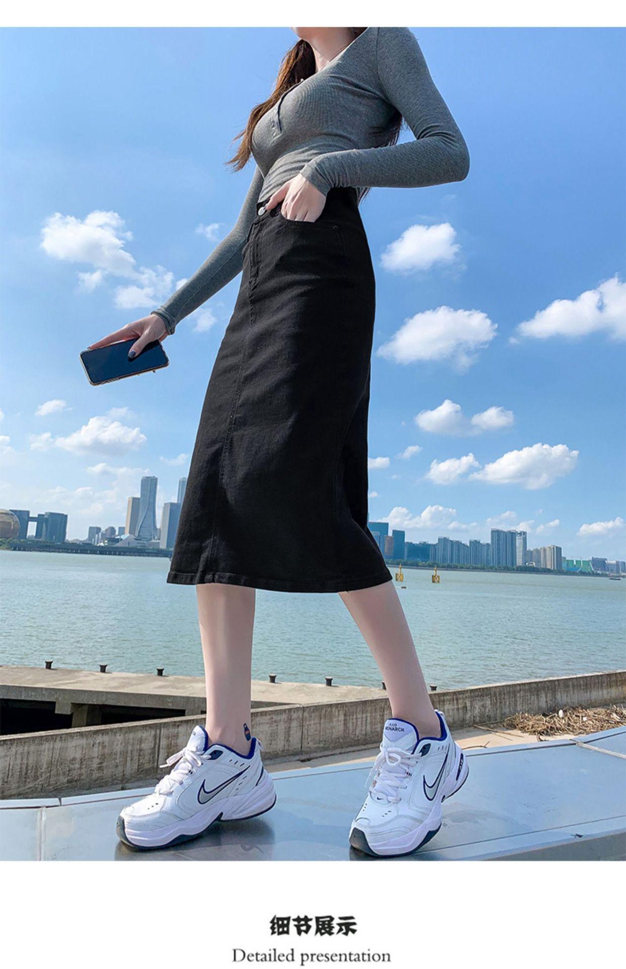 Falda de mezclilla con abertura de cintura alta para mujer 2025 Nueva falda de verano pequeña línea A falda larga retro que cubre las caderas