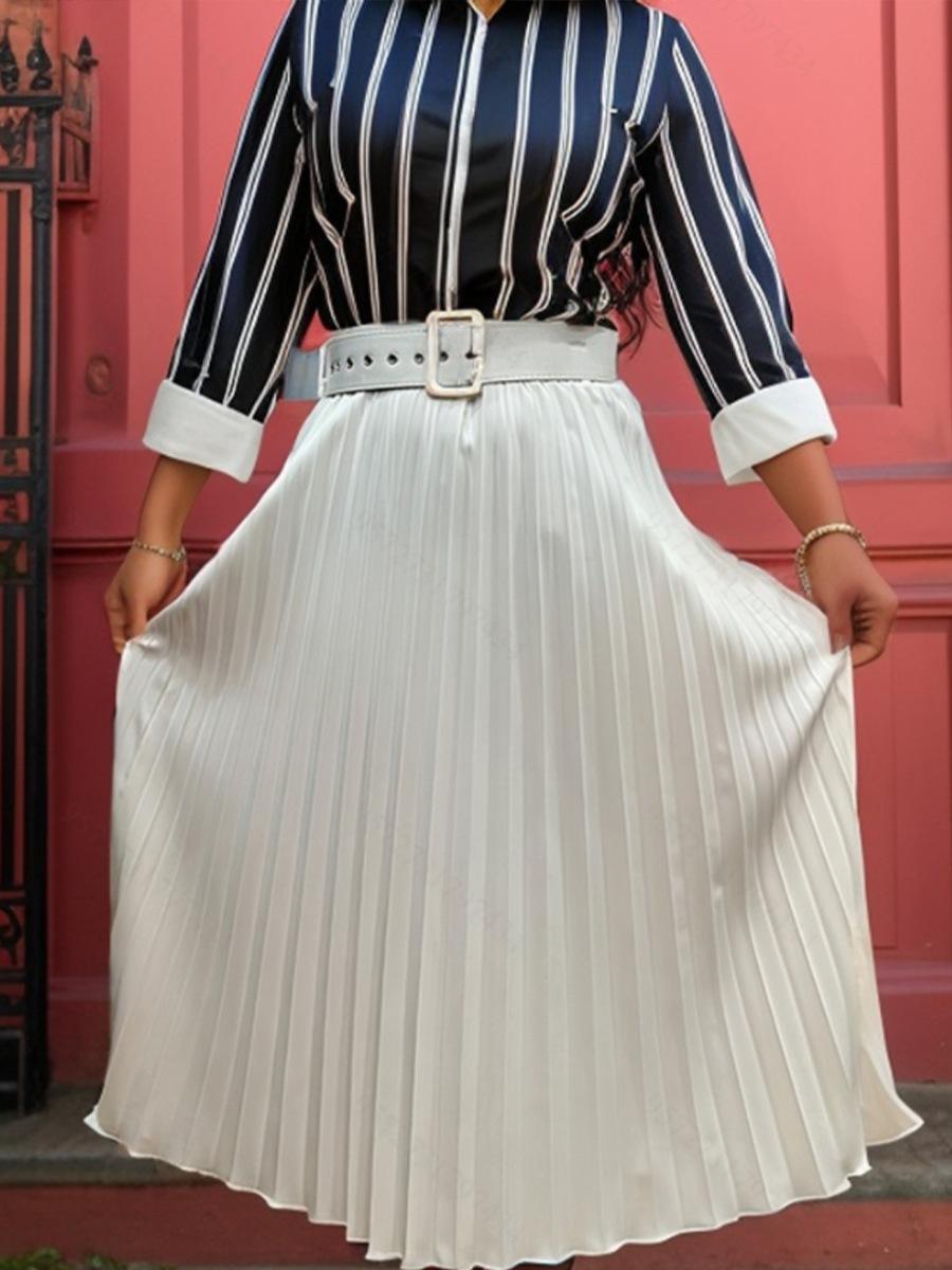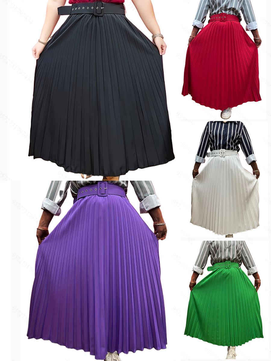 Falda larga plisada con diseño de cinturón de moda de color sólido elegante y nuevo para comercio exterior transfronterizo de Amazon de Europa y América para mujer