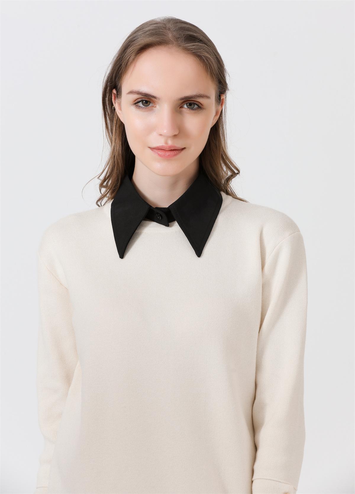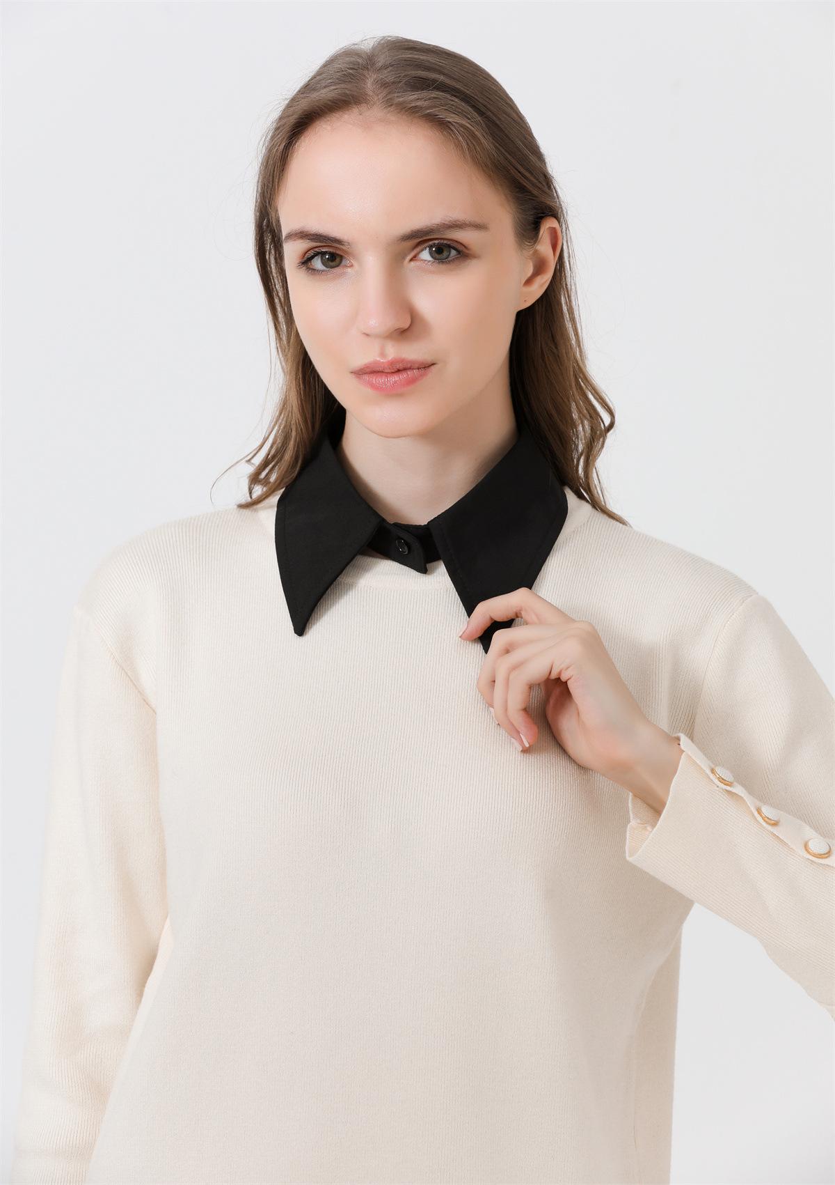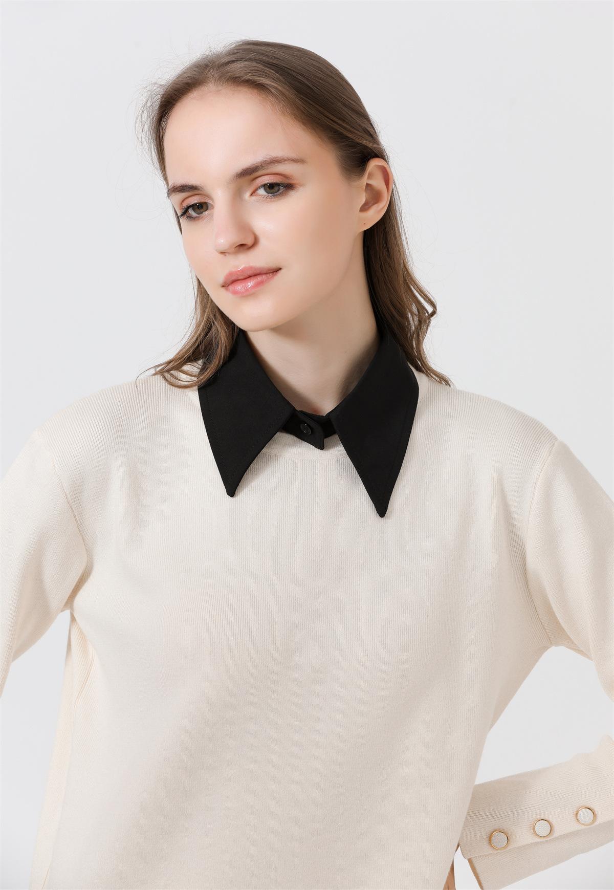Nuevo Lunares Chifón Blanco y Negro Versátil Moda Elegante Cuello Único para Mujer Versátil Decorativo Cuello de Camisa Cuello de Repuesto